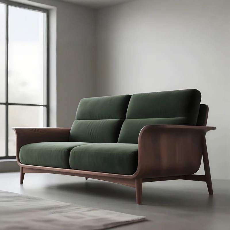2025年新中式北米黒胡桃木ソファ – 高級感あふれる禅の美を追求したミニマリストデザイン、洗練されたリビング空間を演出する本格木製ソファ!