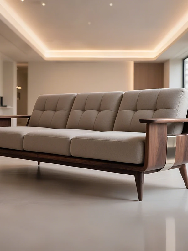 宋風美学 北米産 ブラックウォールナット 使用のラグジュアリーな無垢材ソファ リビングルーム向け ファブリック&本革コンビソファ 高級感あふれるデザインで、快適な空間を演出!