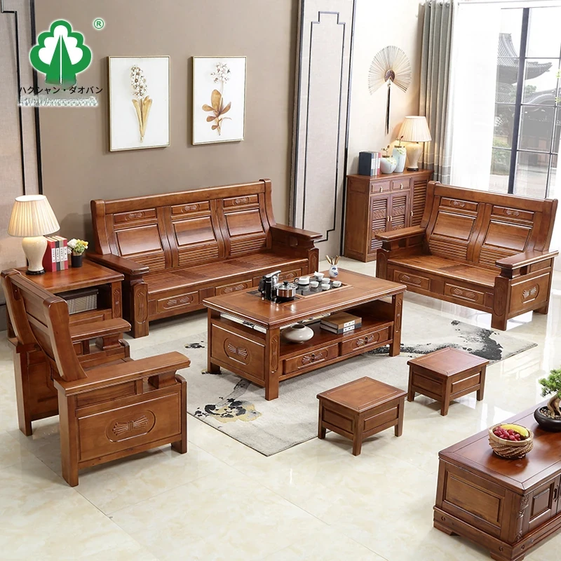 高級マンションの新中式スタイル別荘!リビングルームに最適な本格木製ソファセット。モダンでシンプルなデザイン、ウッディな質感が魅力の大平層用ソファ。洗練された空間を演出します!