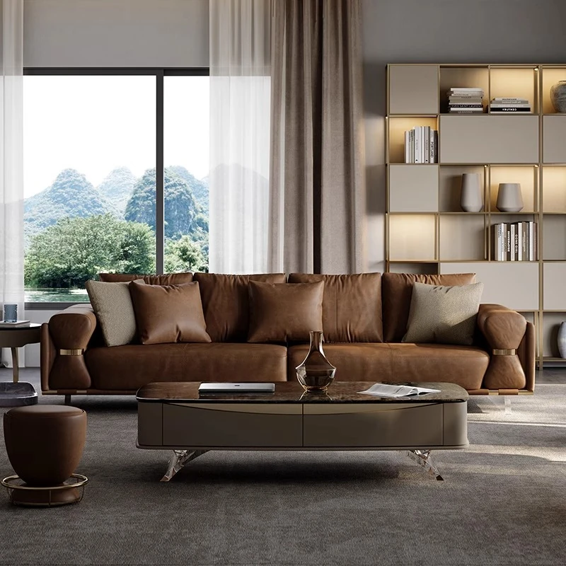 2024年新作!軽奢モダンな本革ソファ|広々としたリビングにぴったりな直排ソファ|全室家具揃い!あなたの暮らしを格上げする極上の一品!