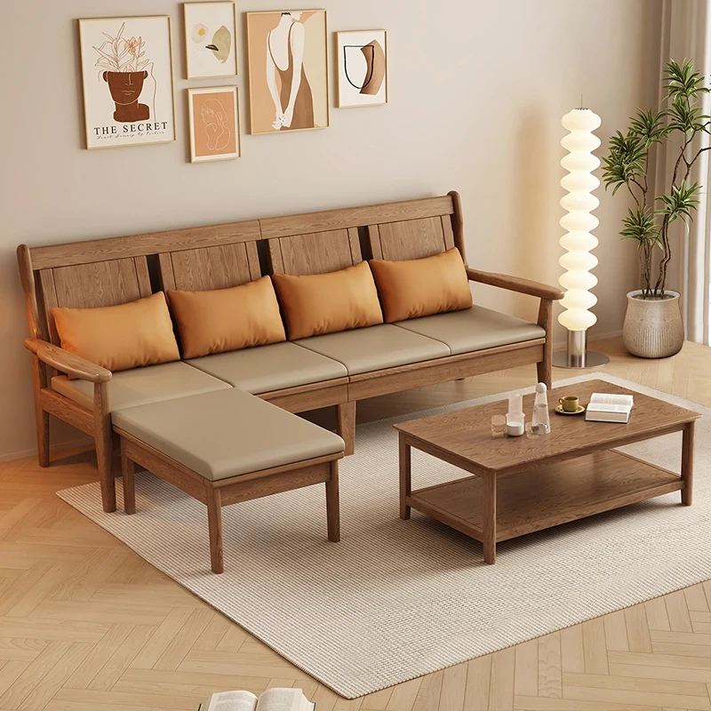 高級南米クルミ無垢材ソファセット - シンプルでスタイリッシュな4人掛け、狭いリビングにも最適な新中式家具!高品質なデザインでおしゃれな空間を演出します。