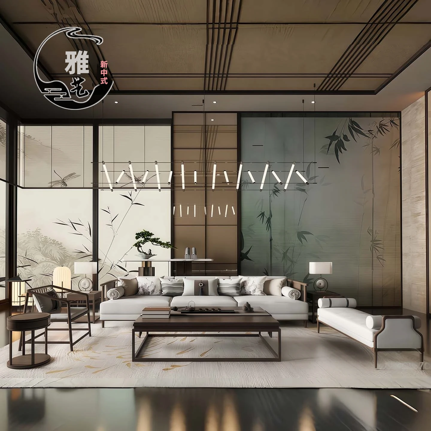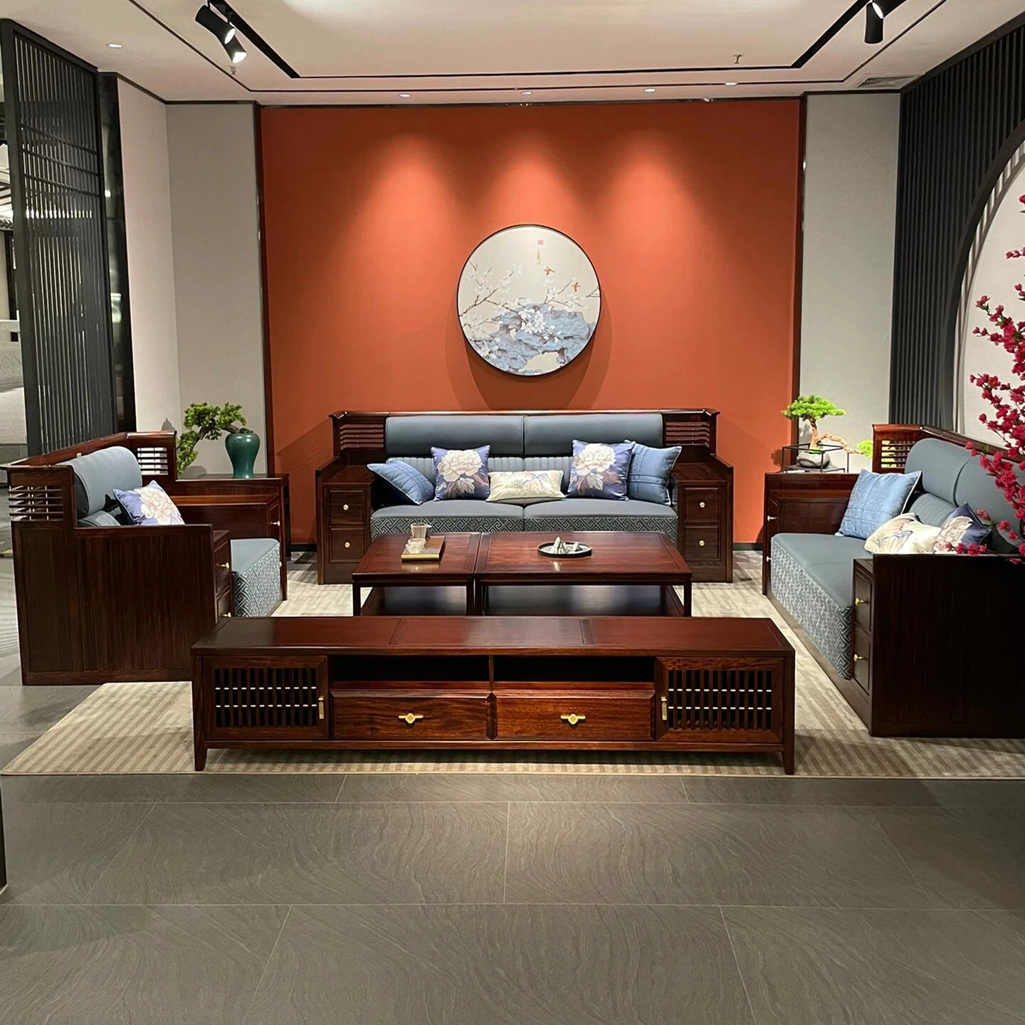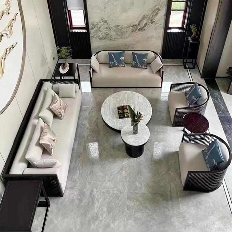 高級新中式ソファー|ウーキン材の無垢材使用|ラグジュアリーなホテルや別荘に最適|広々としたリビングルームにぴったりのデザイン|大規模物件にも対応|上質な空間を演出します!