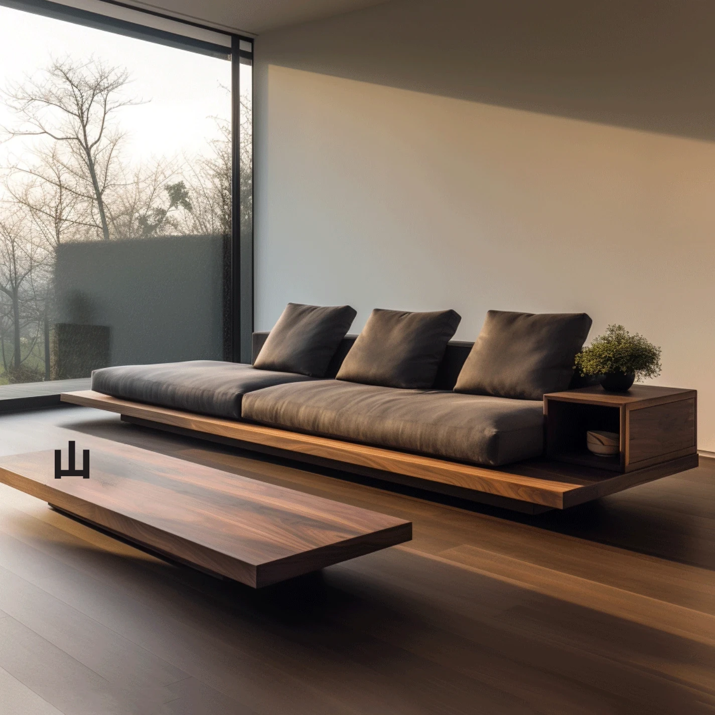 北米黒胡桃木製のモダンシンプルな禅スタイルのローハンベッド、客室やホテルに最適な洗練されたデザインのソファカウチ。心安らぐ空間を演出します。