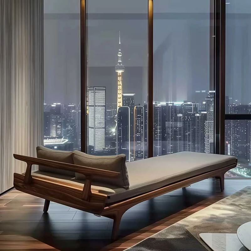 新中式デザインの北米産ブラックウォルナット製、モダンでシンプルなイタリアンラグジュアリーの貴妃椅子。大小の部屋にぴったり!リビングや寝室をスタイリッシュに演出します。