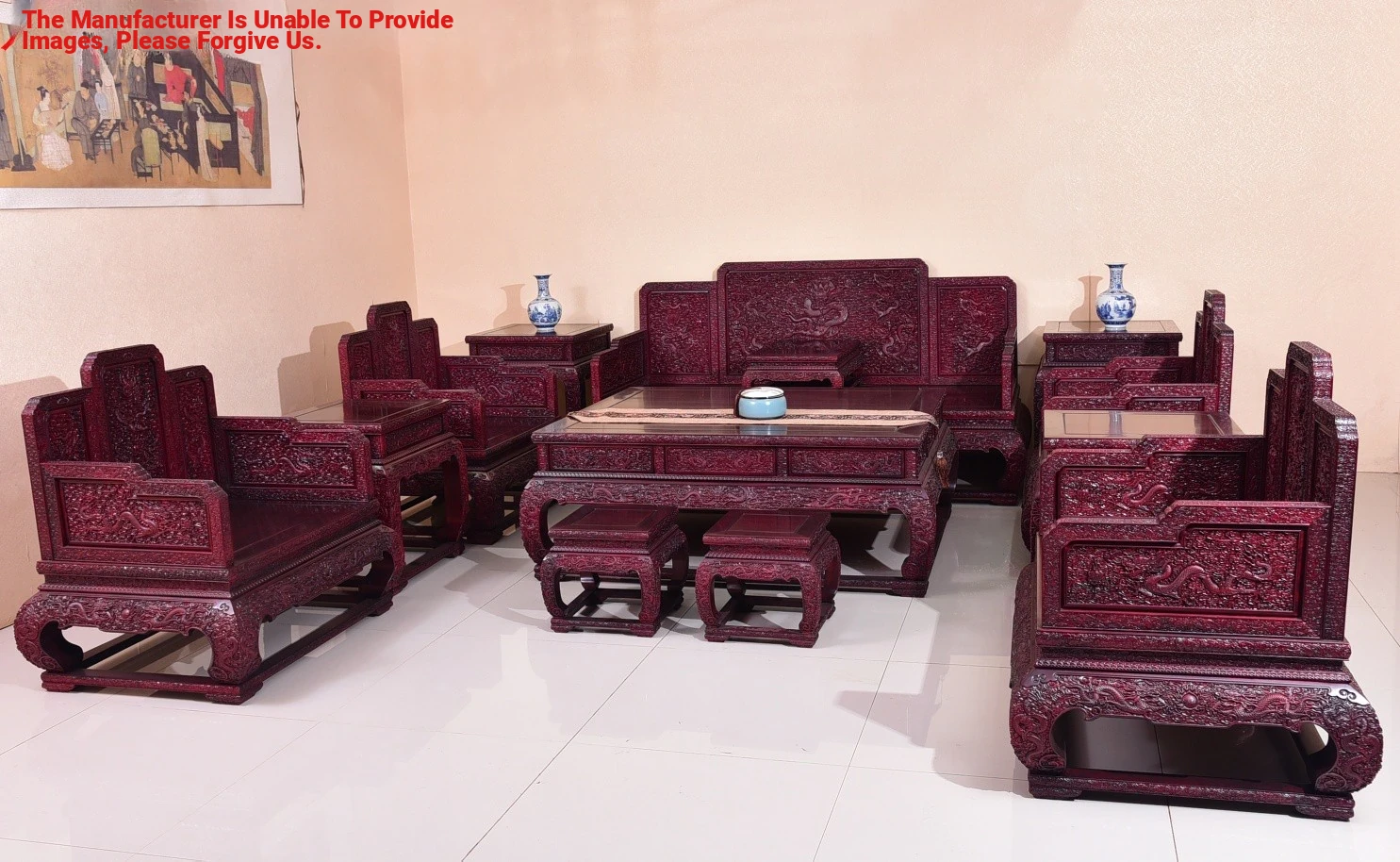 Elegant Qing-Style Dragon Cloud Sofa Set - 13-Piece Luxury Furniture Made from African Small Leaf Rosewood and Bloodwood, Perfect for a Majestic Home Décor.