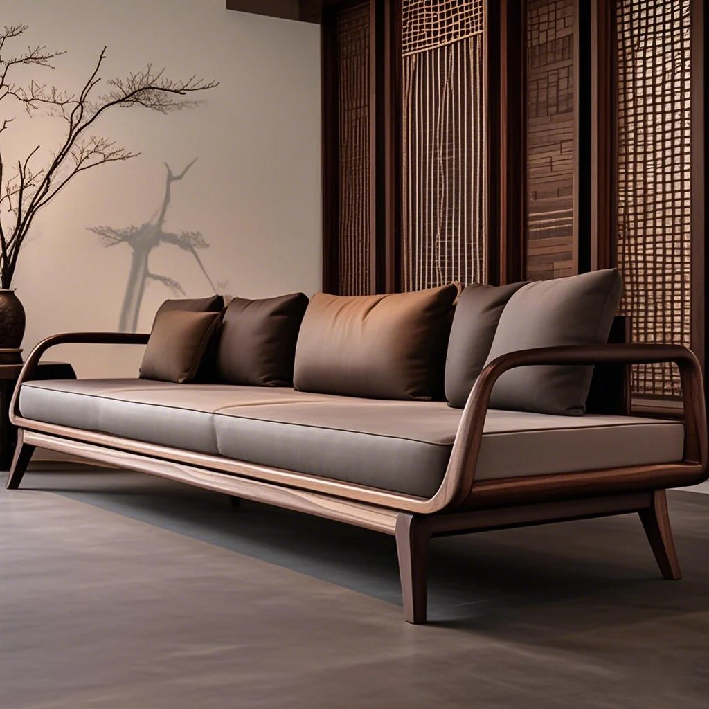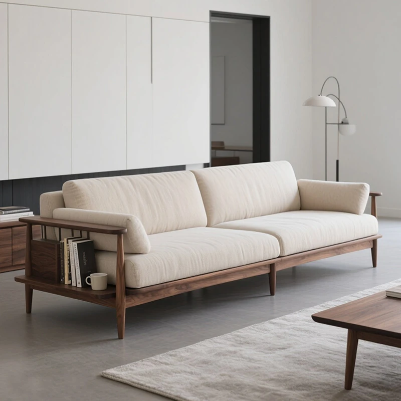 2025 New Arrival: Modern Chinese Style Solid North American Black Walnut Sofa for Small to Large Living Rooms – Elegant and Durable Solid Wood Furniture
