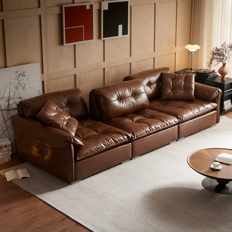 Italian Minimalist Top-Grain Leather Sofa - Modern High-End Vintage Leather Couch for Small to Large Living Rooms, Perfect Blend of Style and Comfort
