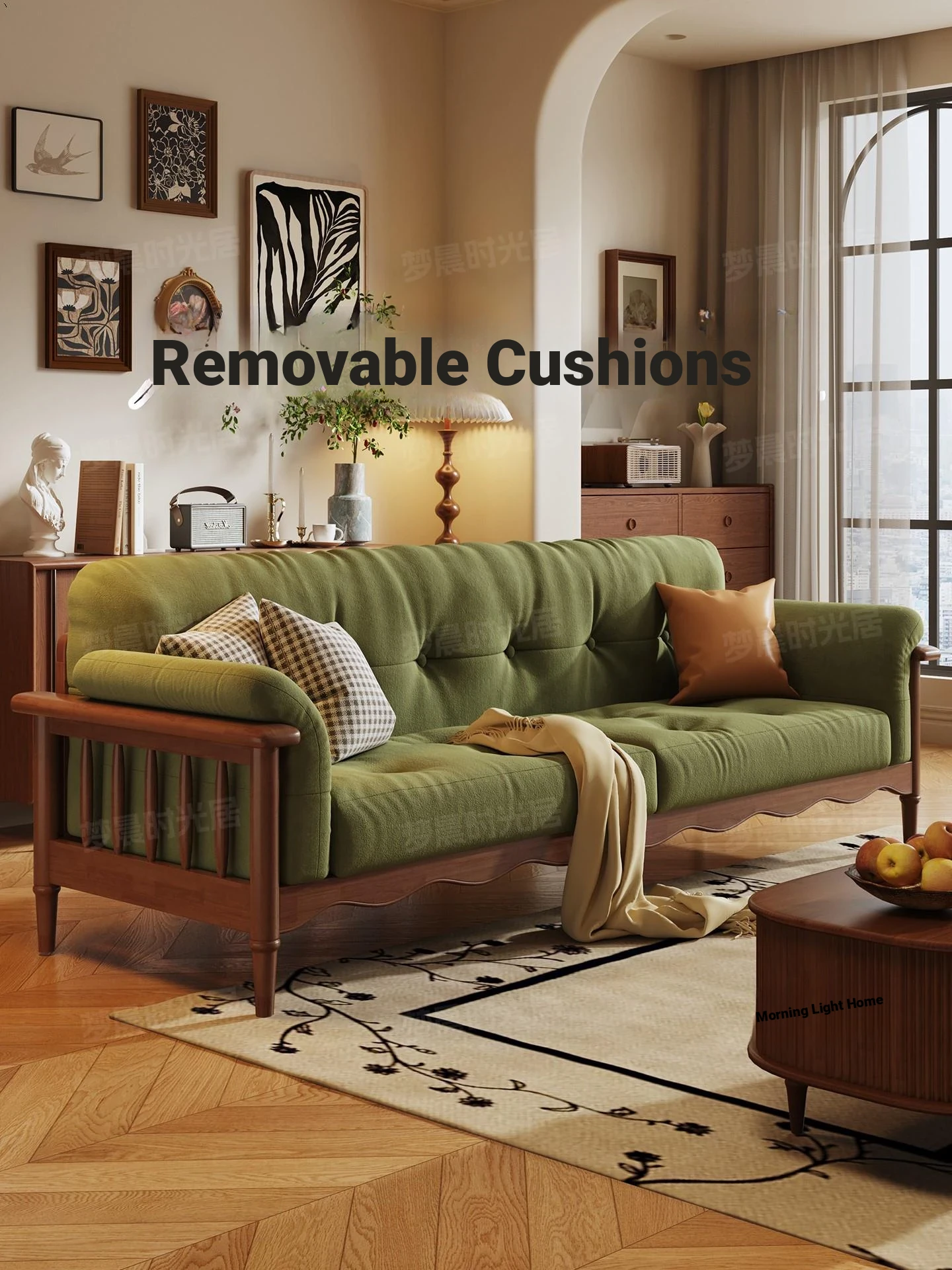 French and European Style Carved Solid Wood Sofa - Vintage American Full Solid Wood Fabric Sofa for Living Room