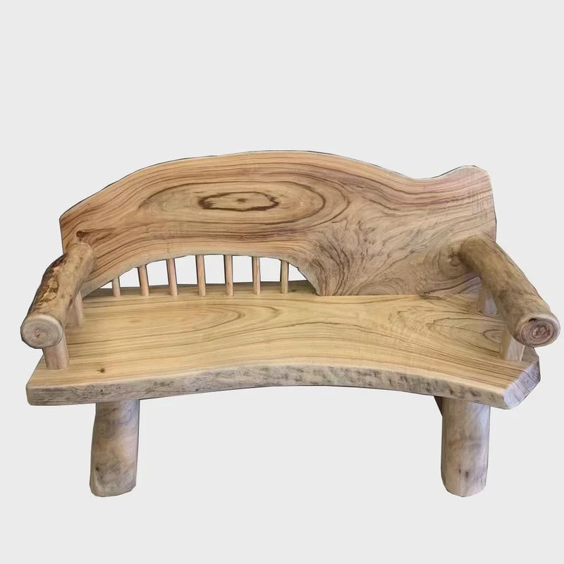 Natural Solid Camphor Wood Sofa - 3-Seater Rustic Bench with Unique Design, Minimalist Eco-Friendly Lounge Chair for Living Room and Outdoor Use, Complete Set