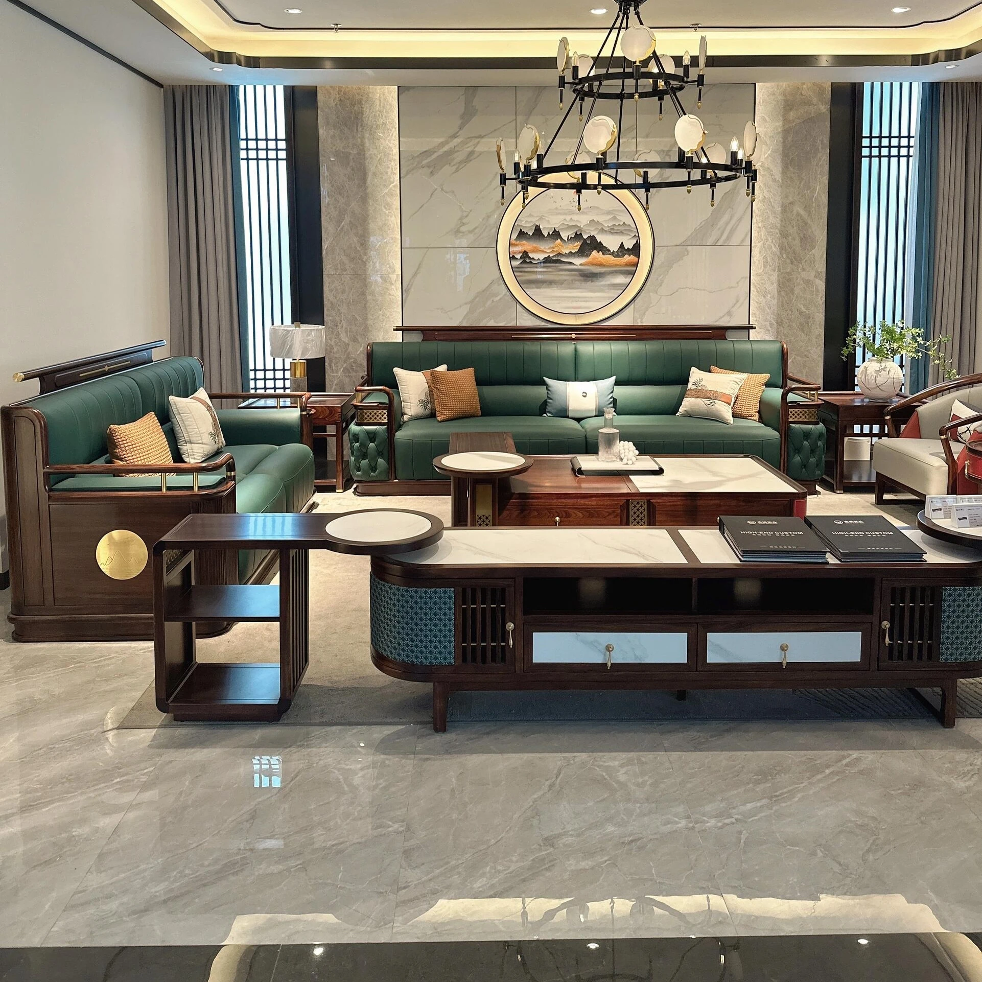 Luxury Flat New Chinese Style Villa Living Room Solid Wood Sofa Set - Modern Minimalist Home Design with Premium Wenge Wood