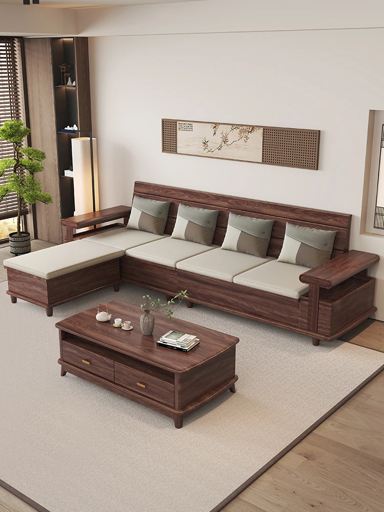 Solid Black Walnut Wood Sofa Set with Storage - Versatile Chaise Lounge for Small Spaces, Ideal for Both Winter and Summer, Modern Chinese Furniture for Your Living Room