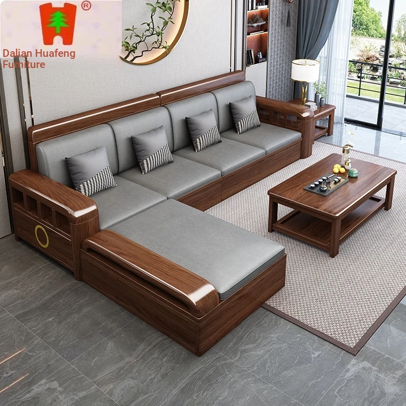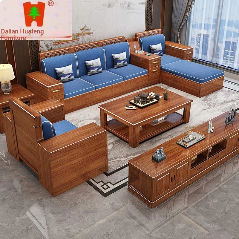 Dalian Huafeng Official Store Walnut Wood New Chinese Style Solid Wood Sofa Set for Living Room - All Solid Wood Modular Design, Perfect for Small Spaces This Winter