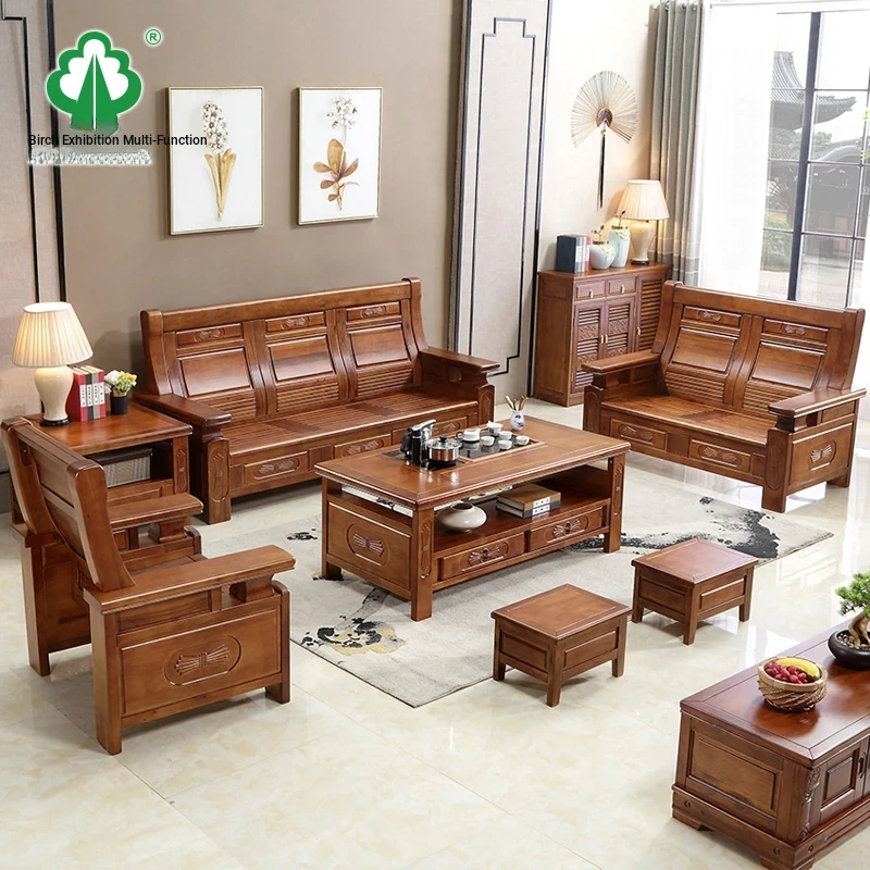 Zhejiang Cedar Wood Sofa Set - Traditional Chinese Solid Wood Sofa Combination for Small Living Rooms, Perfect for Economical Rural Homes.