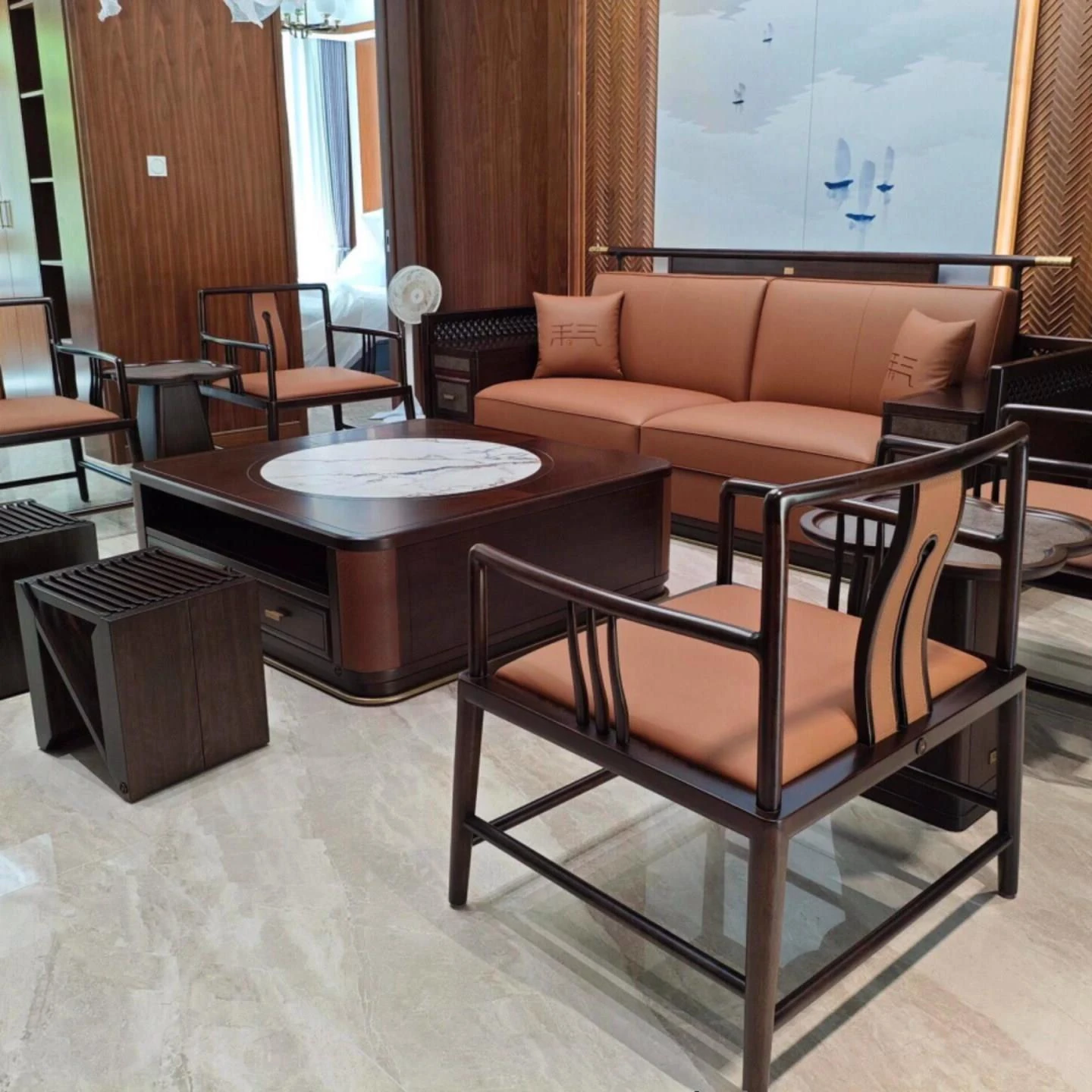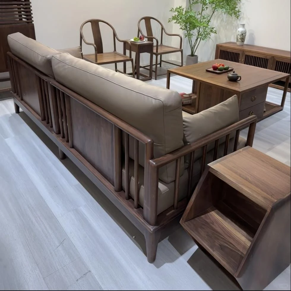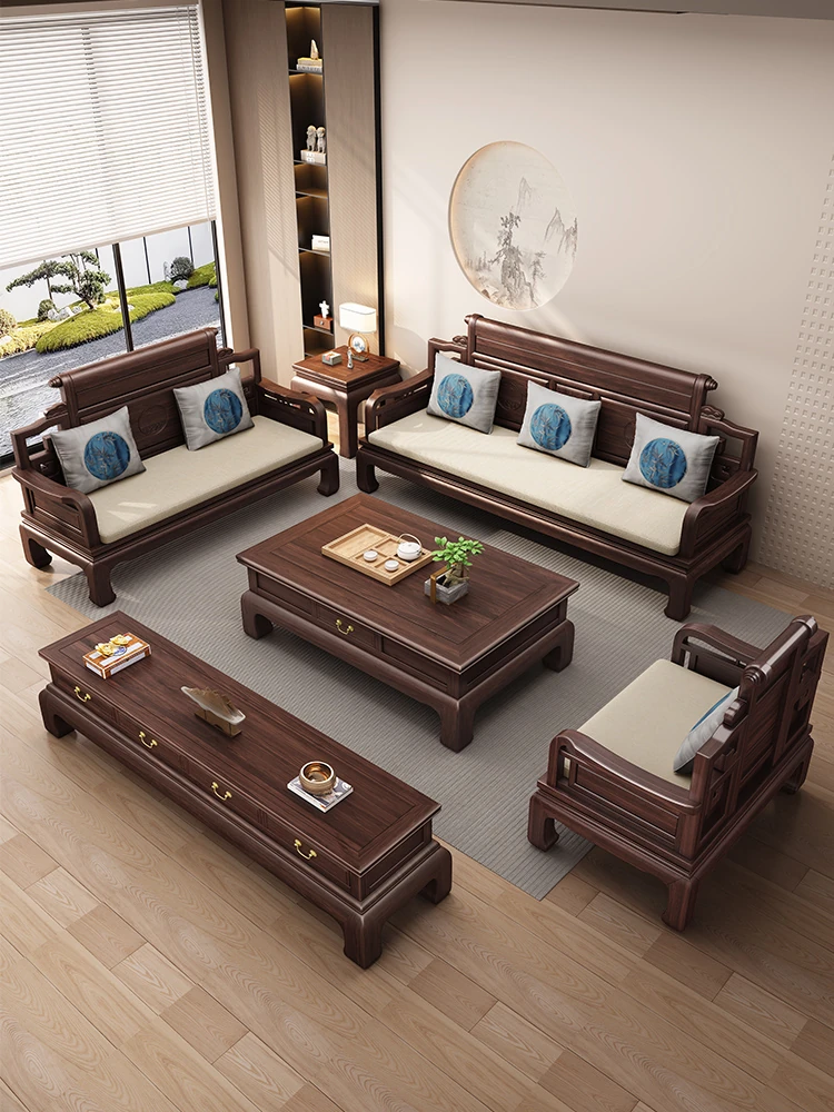 2025 New Chinese Style Solid Black Walnut Sofa Set - Luxurious, Versatile Living Room Furniture for Year-Round Comfort in Spacious Homes