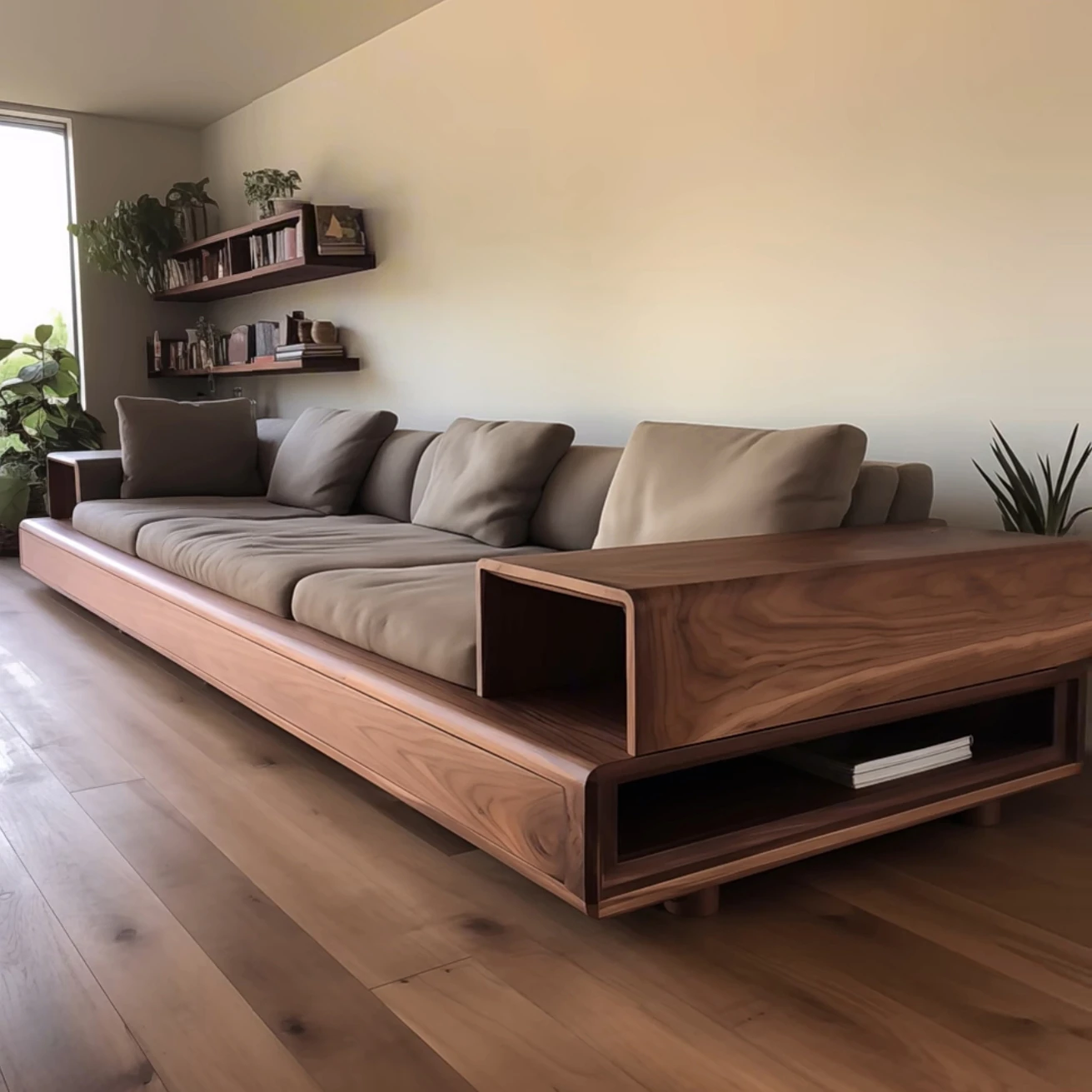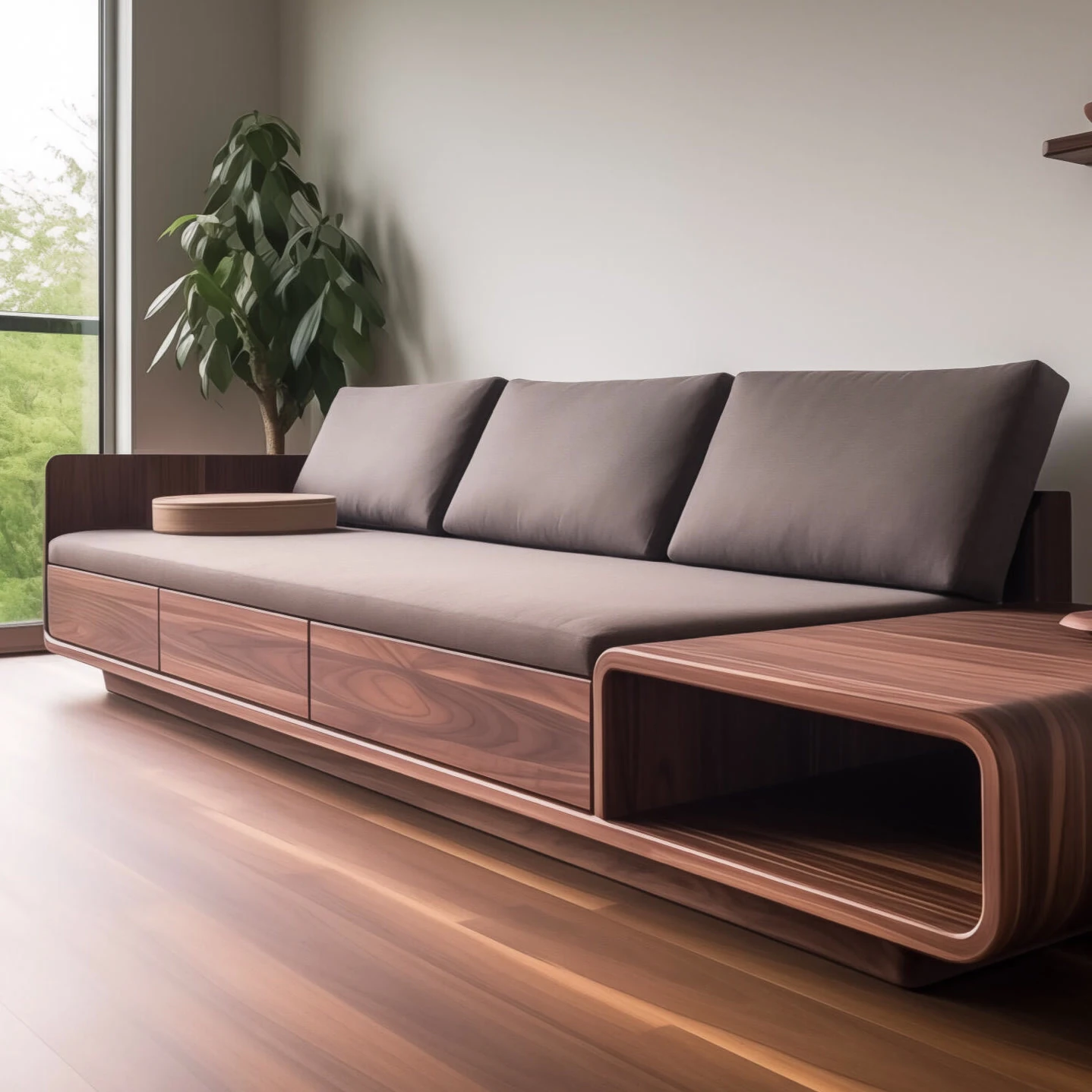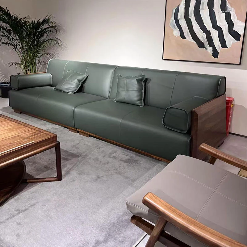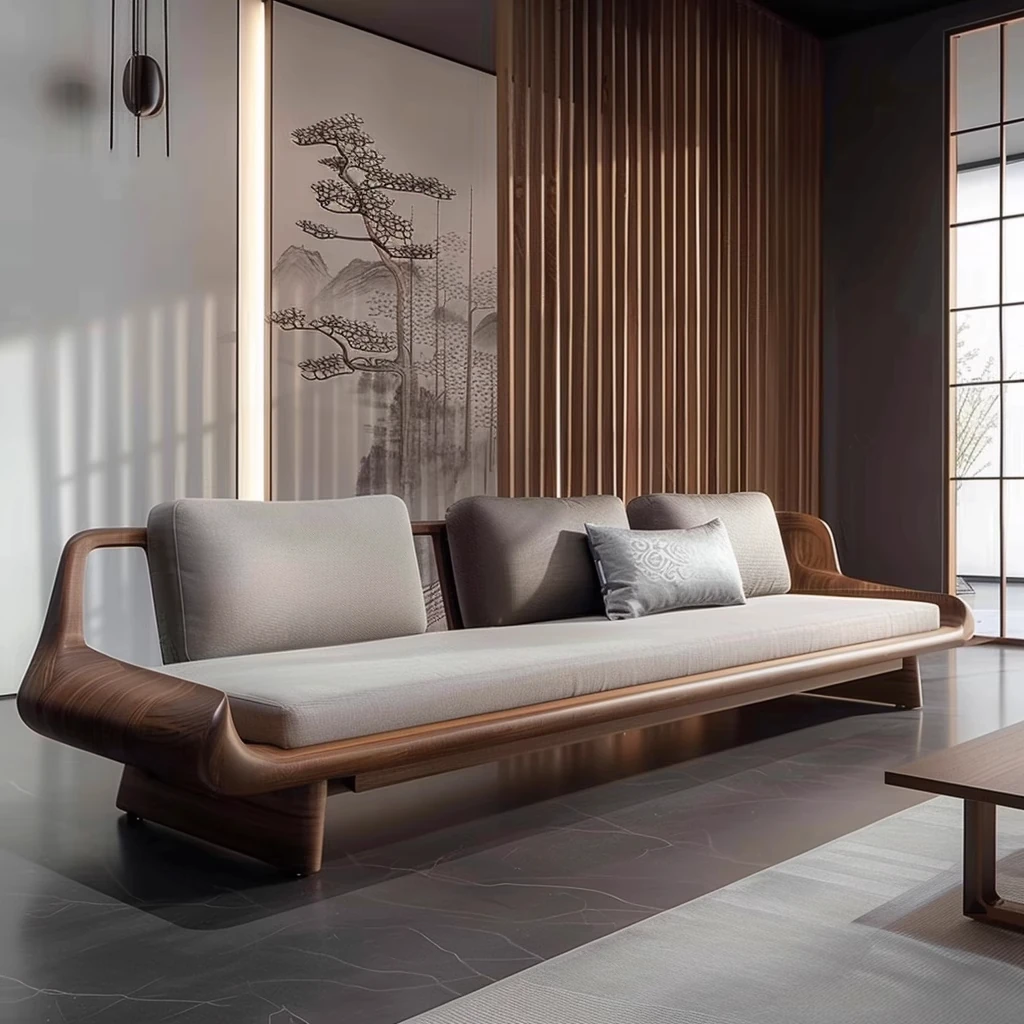 2025 New Style North American Black Walnut Zen-Inspired Straight Sofa - Perfect for Large Homes, Hotels, and Guesthouses - Elevate Your Living Room with Elegant Minimalism