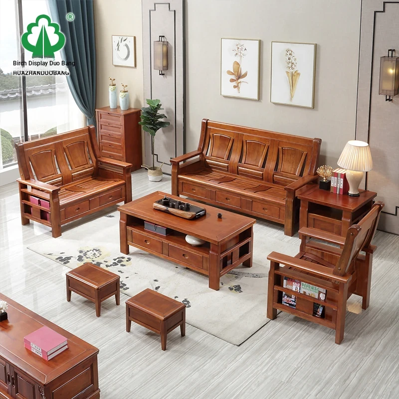 Birch Zhan Duobang Solid Wood Sofa Set - Chinese Style Camphor Wood Living Room Furniture, 1+2+3 Seating Arrangement, Perfect for Elegant Home Decor