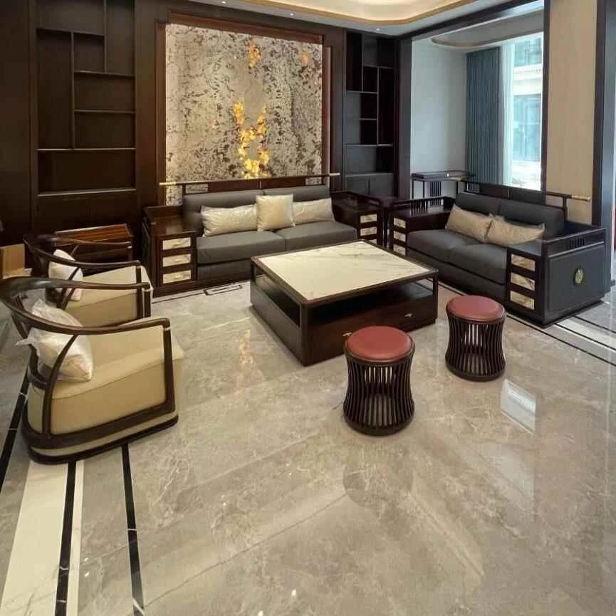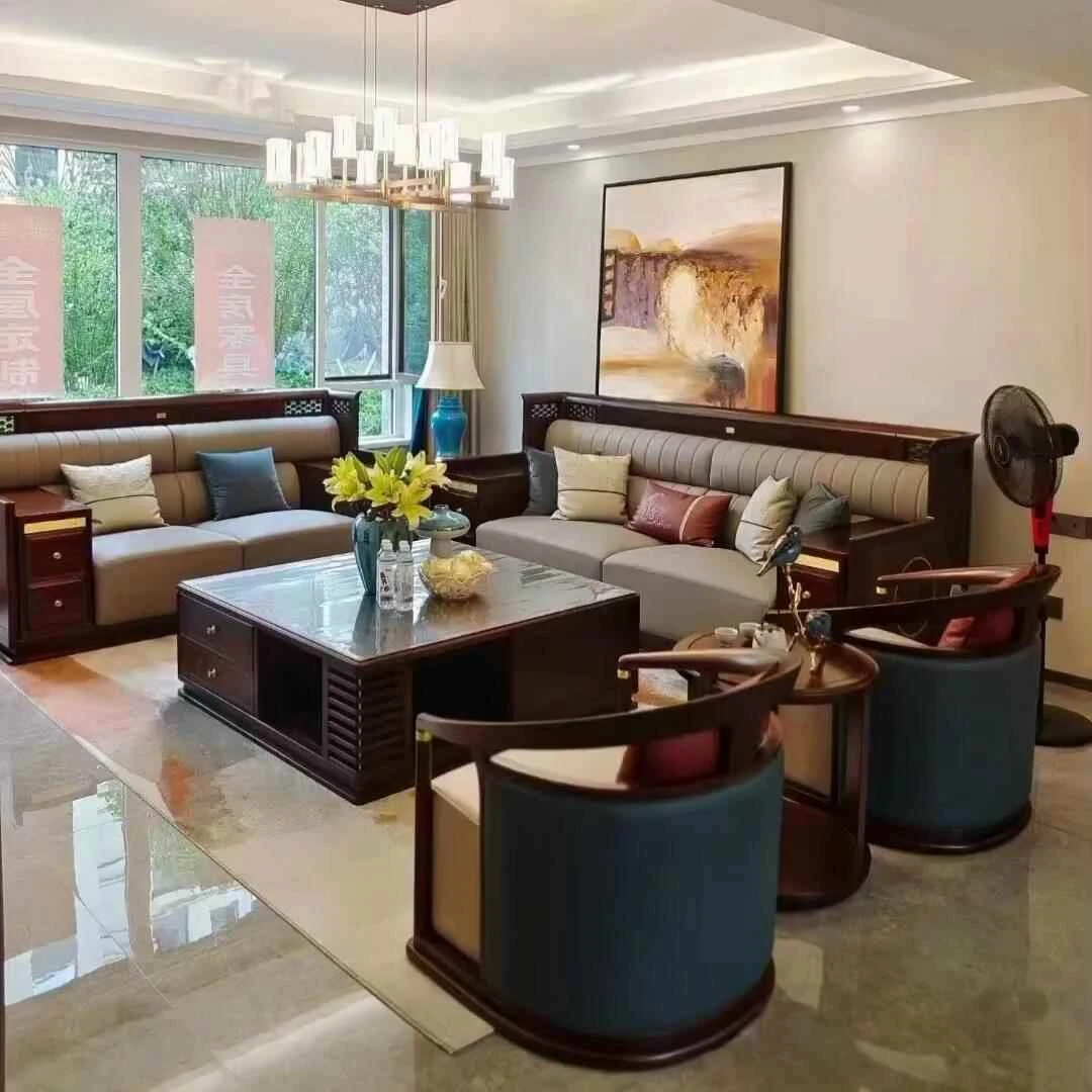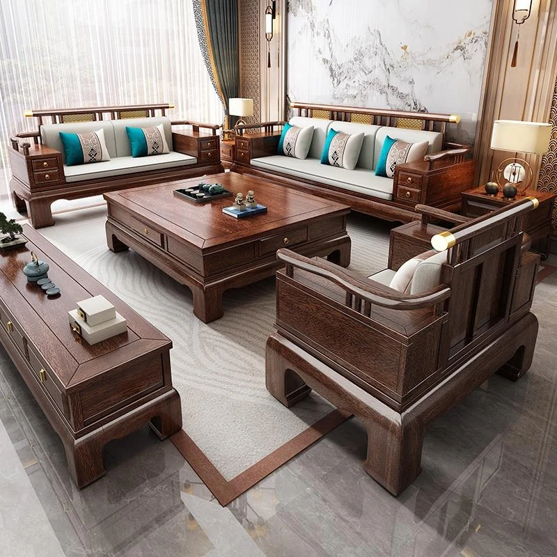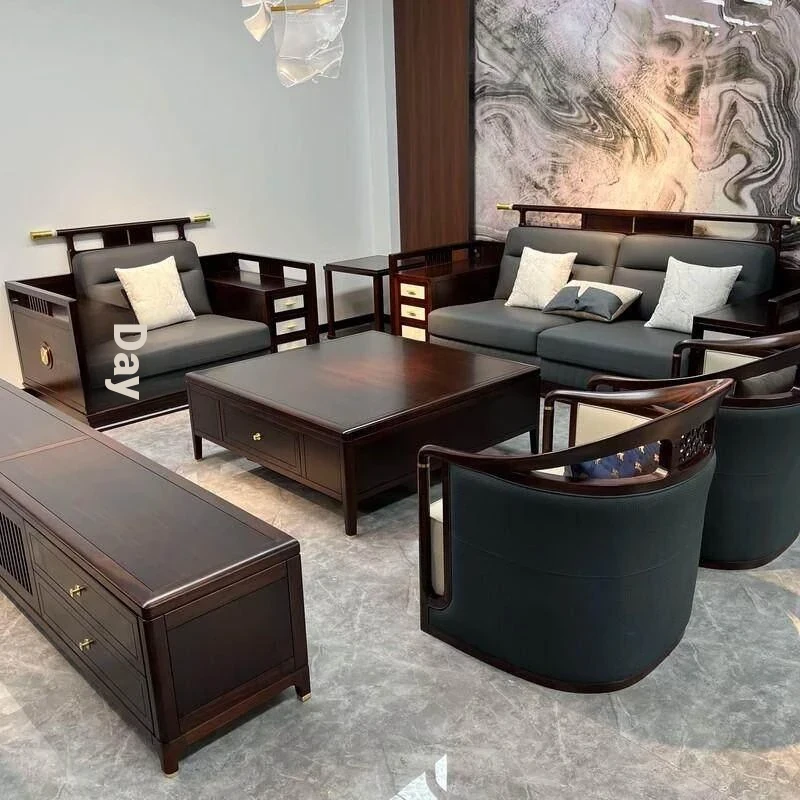Luxury New Chinese Style Villa Living Room Solid Wood Sofa Set - Modern Minimalist Home Decor with Blackwood for Spacious Layout