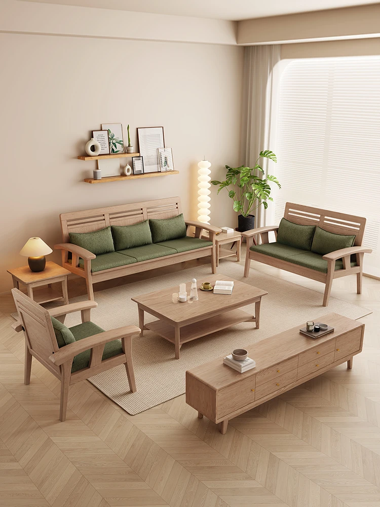 Solid Wood Sofa Set for Small Living Rooms - Modern Minimalist New Chinese Style Natural Wood Furniture Combination