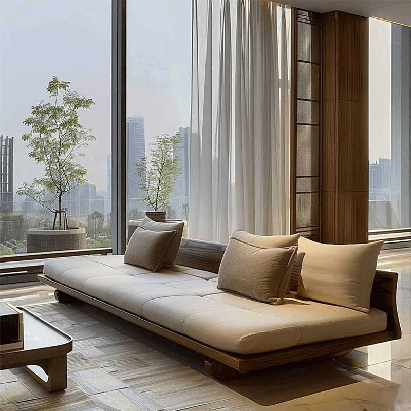 2025 New Design Solid Wood Sofa in Black Walnut & Ash - Modern Chinese Zen Style Furniture for Hotels and Guesthouses