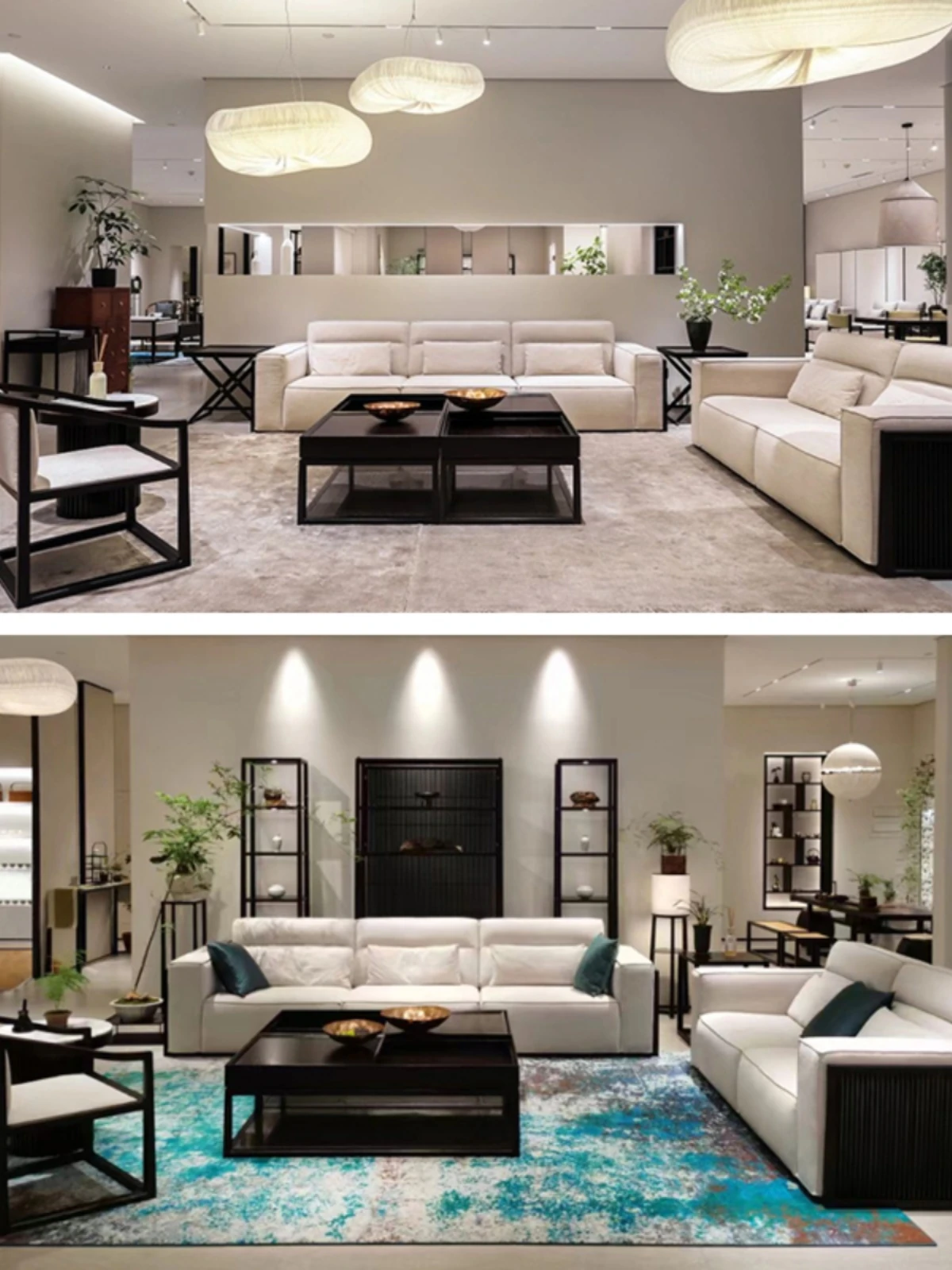 Modern Luxury Genuine Leather Sofa for Spacious Homes - Elegant Italian Design for Upscale Living Rooms and Villas, Perfect for Creating a Sophisticated Atmosphere in Your Home.