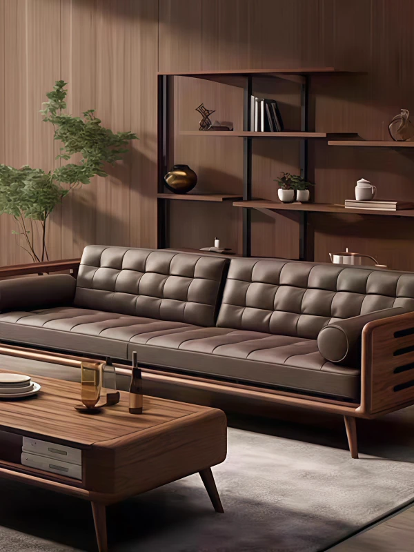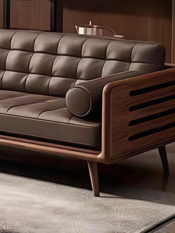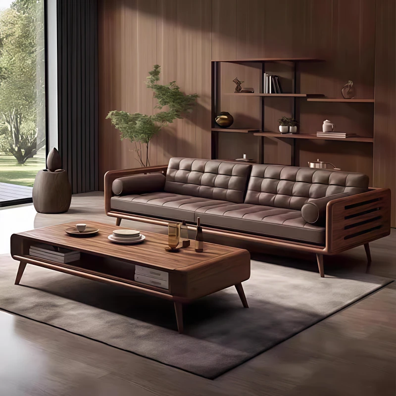 2025 Modern Minimalist Solid Wood Sofa - Song Style Aesthetics in North American Black Walnut - High-End New Chinese Style Sofa for Elegant Living Spaces