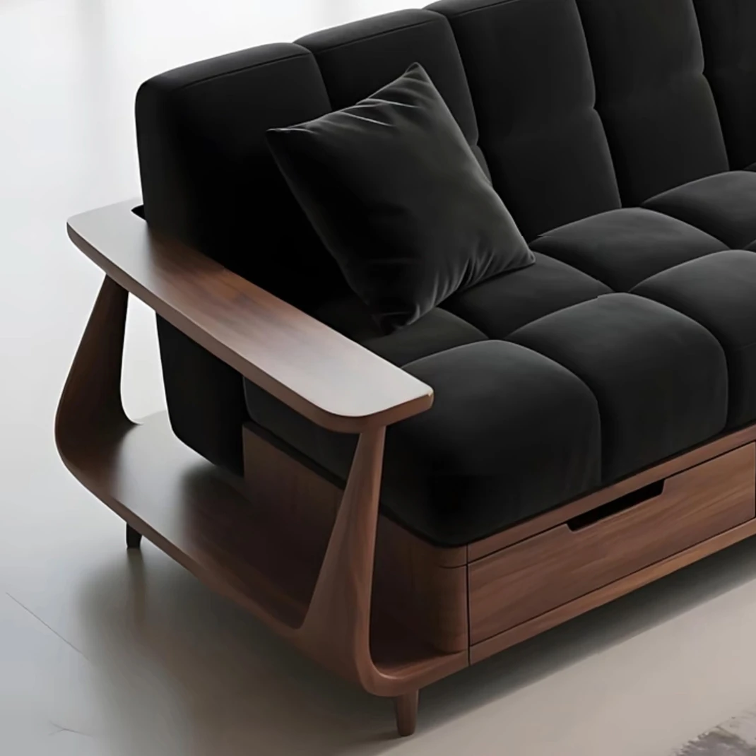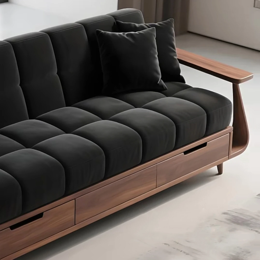 2025 New Arrival: Elegant Modern Chinese Black Walnut Solid Wood Sofa with Premium Fabric - Stylish Minimalist Furniture for Contemporary Living Spaces