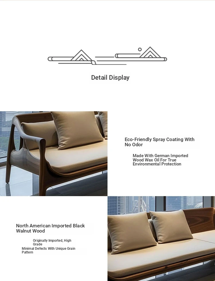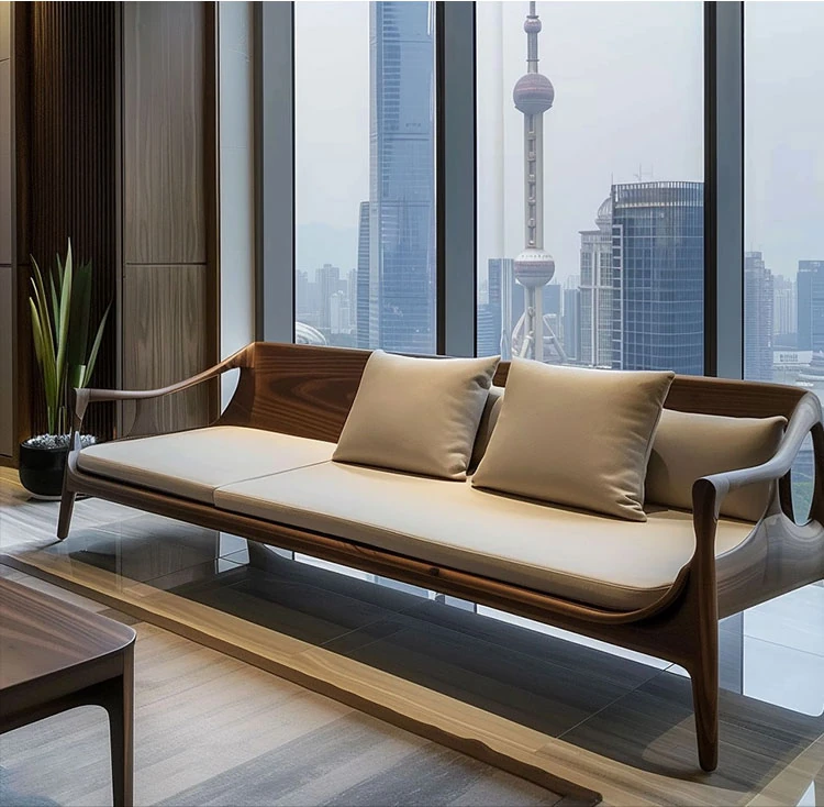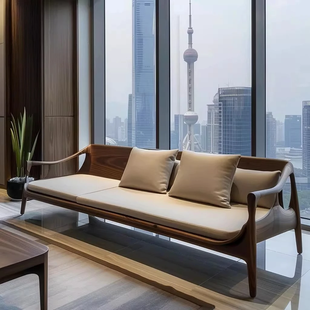 2025 New Chinese Style Black Walnut Fabric Sofa - Solid Wood with Ash Wood, Minimalist Design for High-End Luxury in Office and Living Room