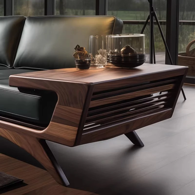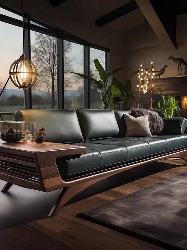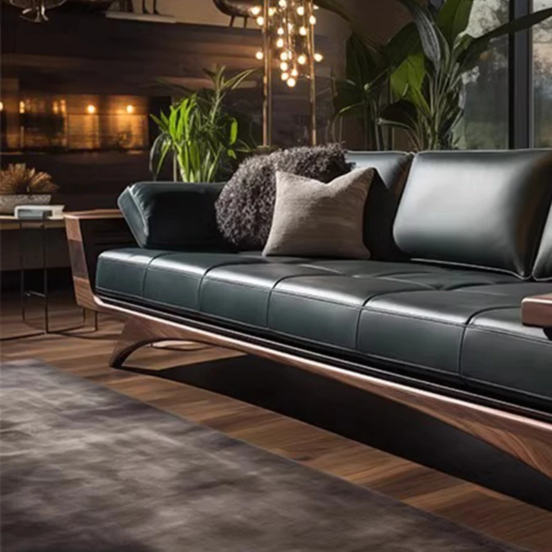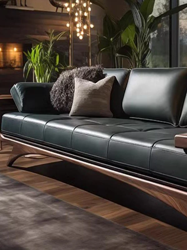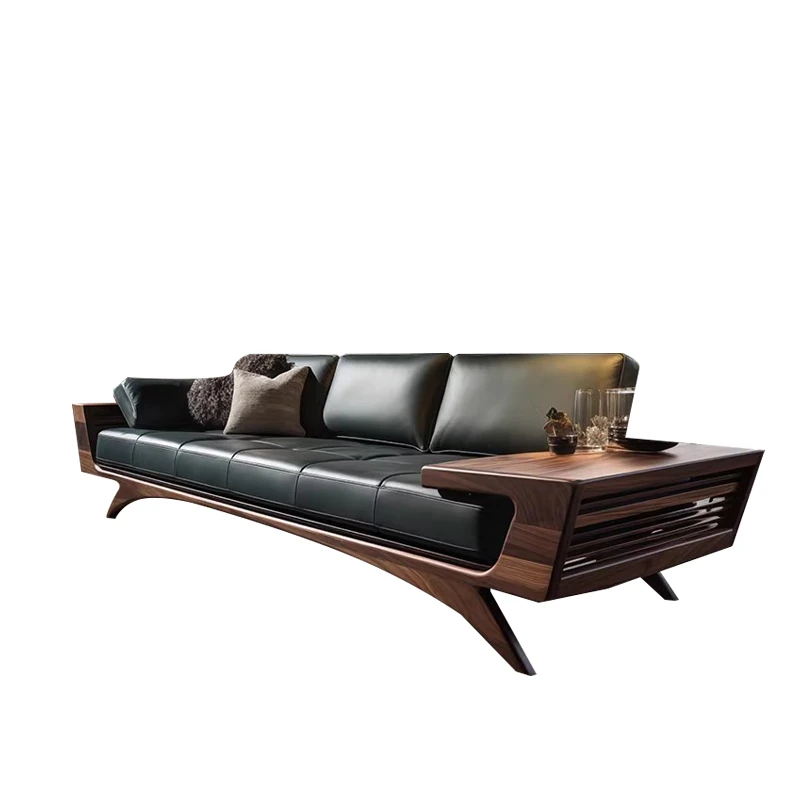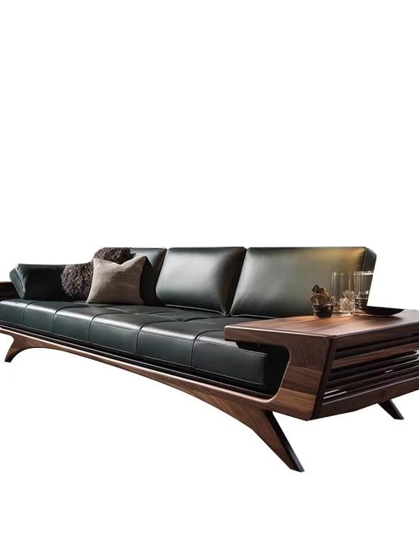 2025 New Chinese Style High-End Sofa with Song Aesthetic Design - Walnut Wood & Genuine Leather Upholstery, Perfect for Your Living Room