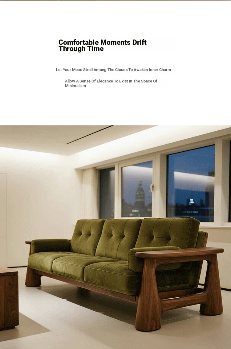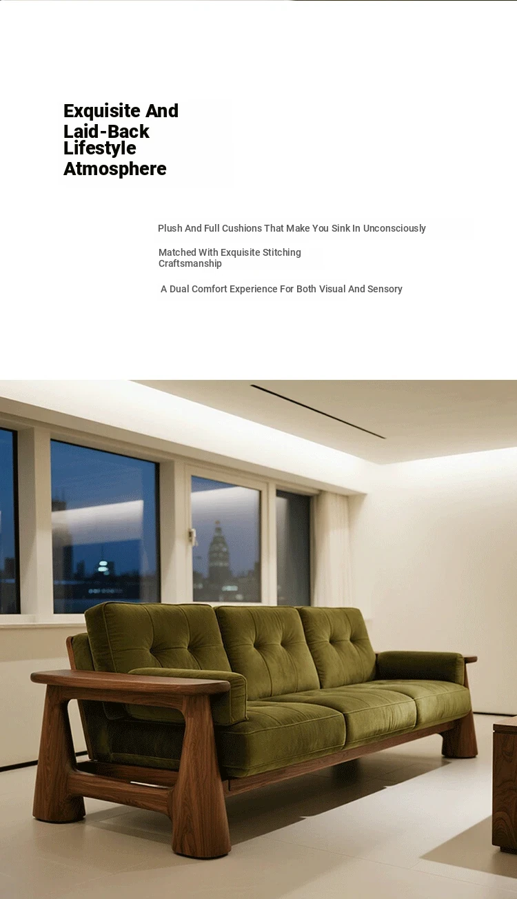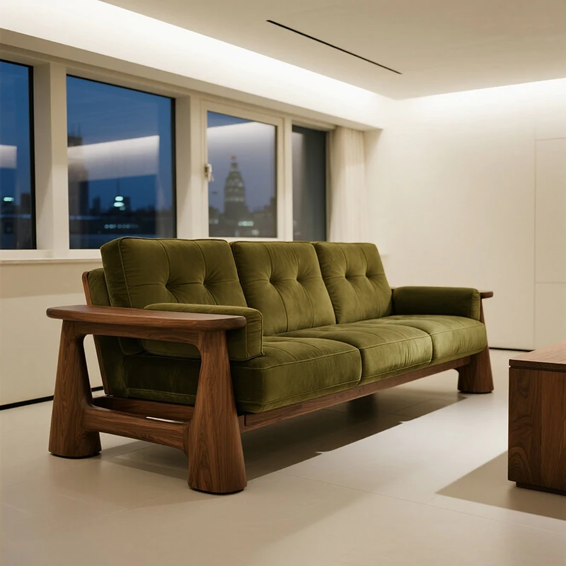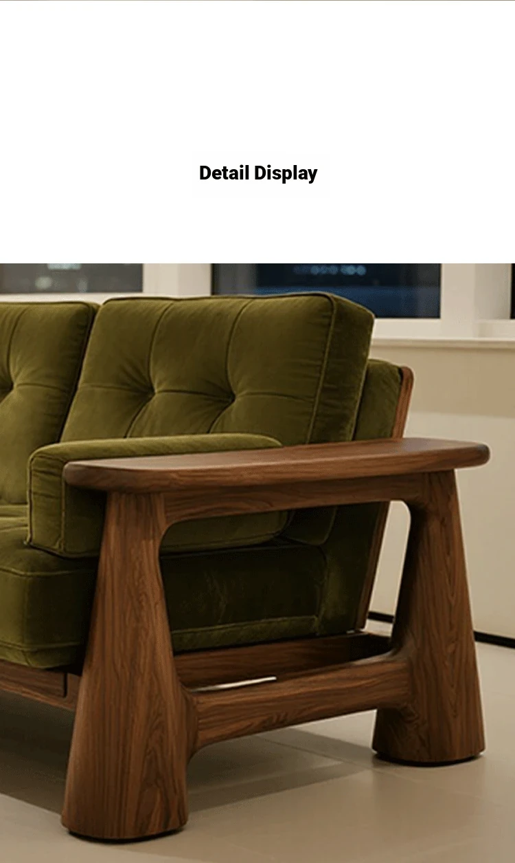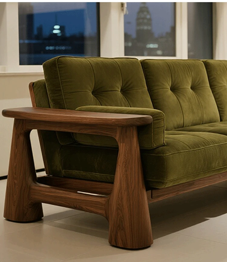 2025 New Chinese Style Solid Wood Sofa - Modern Minimalist Home Living Room Upholstered Sofa in Antique Black Walnut Finish