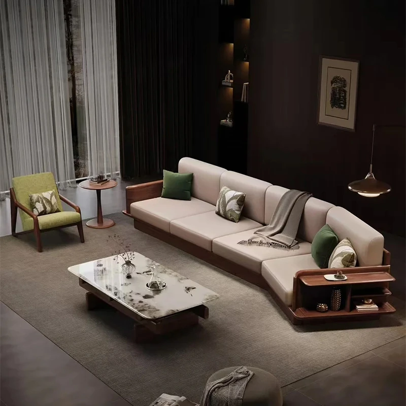 2025 New Chinese Style Walnut Solid Wood Sofa - Modern Minimalist Design for Small Spaces, Perfect Addition to Your Living Room Furniture Collection