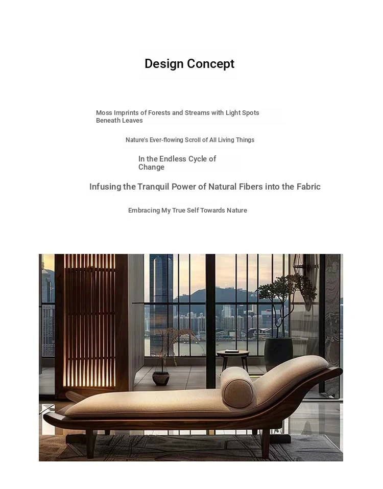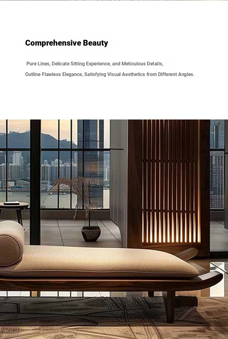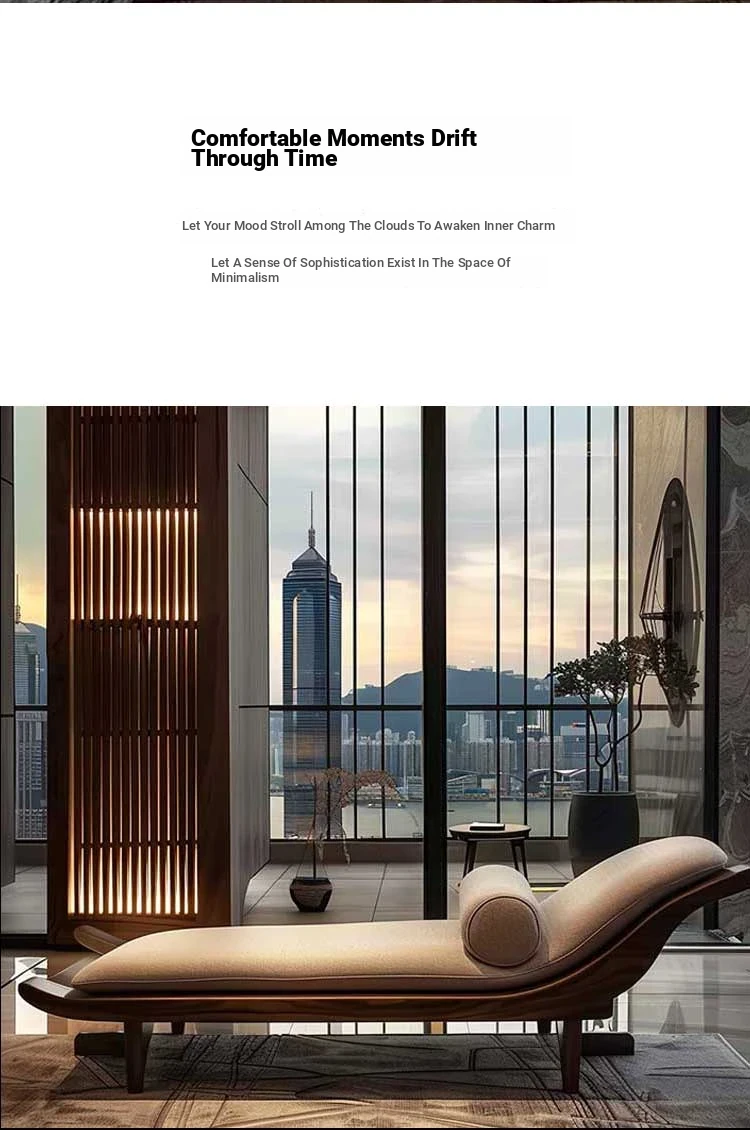 2025 New Chinese Style Zen Solid Wood Chaise Lounge - Walnut and Ash Wood, Antique Aesthetic, Elegant and Relaxing Sofa for Boutique Hotels and Homes