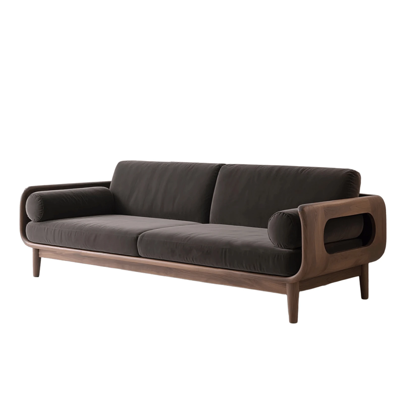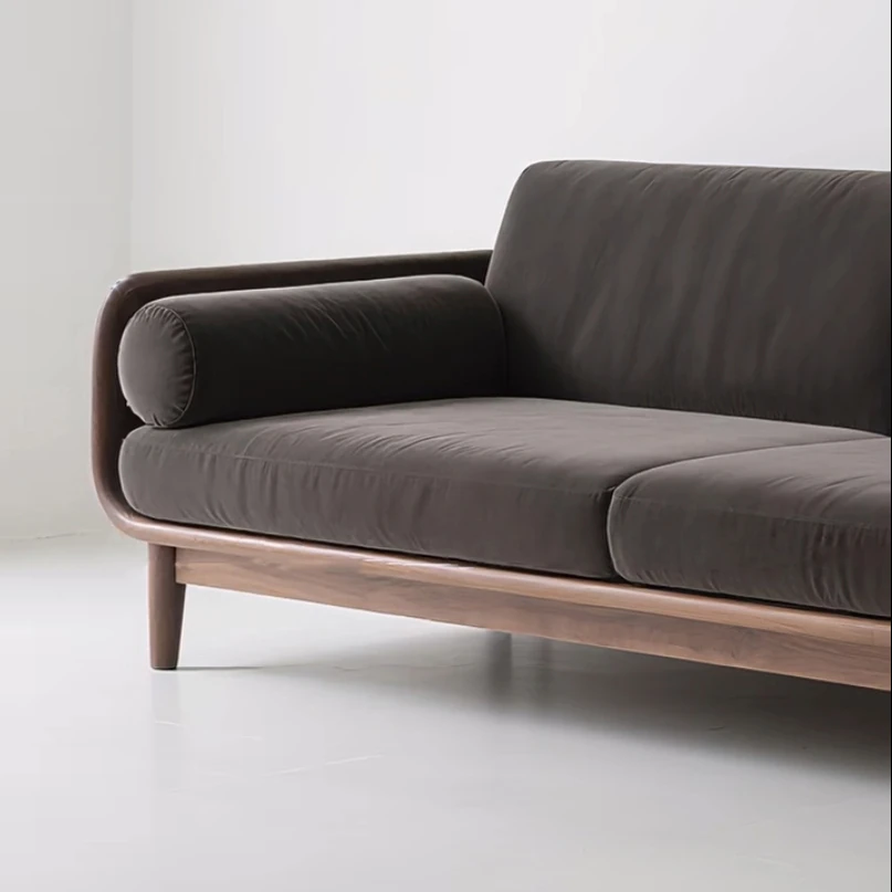 2025 New Collection of Modern Chinese Style Solid Black Walnut Sofa - Elegant and Comfortable Upholstered Living Room Couch for Luxurious Relaxation