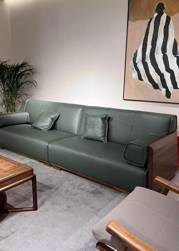 2025 New Design Solid Wood Sofa in Black Walnut & Ash - Modern Chinese Zen Style Furniture for Hotels and Guesthouses