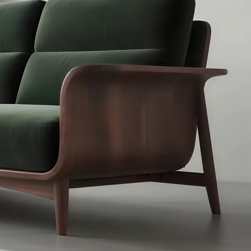 2025 New Luxury Modern Chinese Solid Wood Sofa - High-End Walnut Sofa for Living Room and Villa, Stylish Straight Layout with Elegant Fabric Design