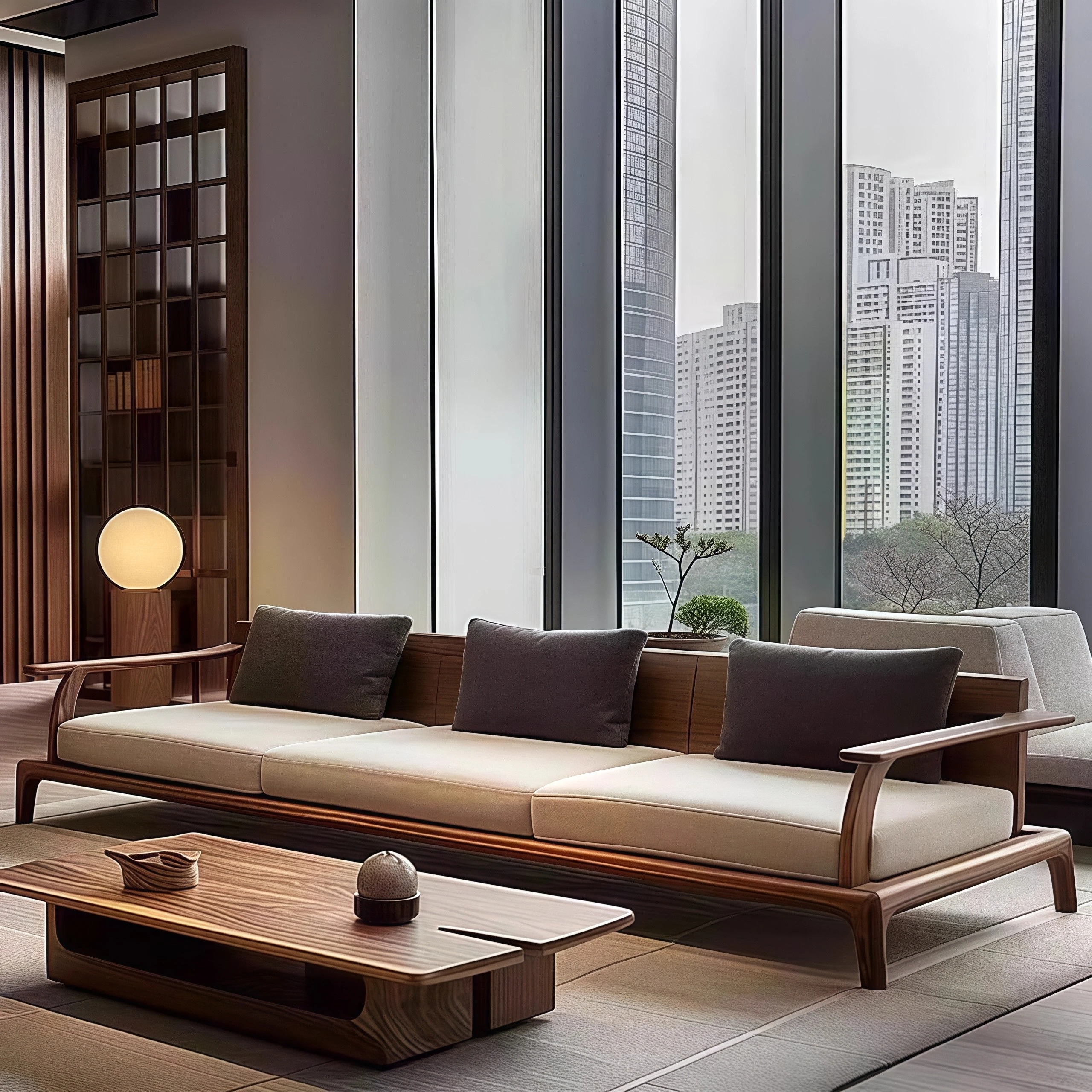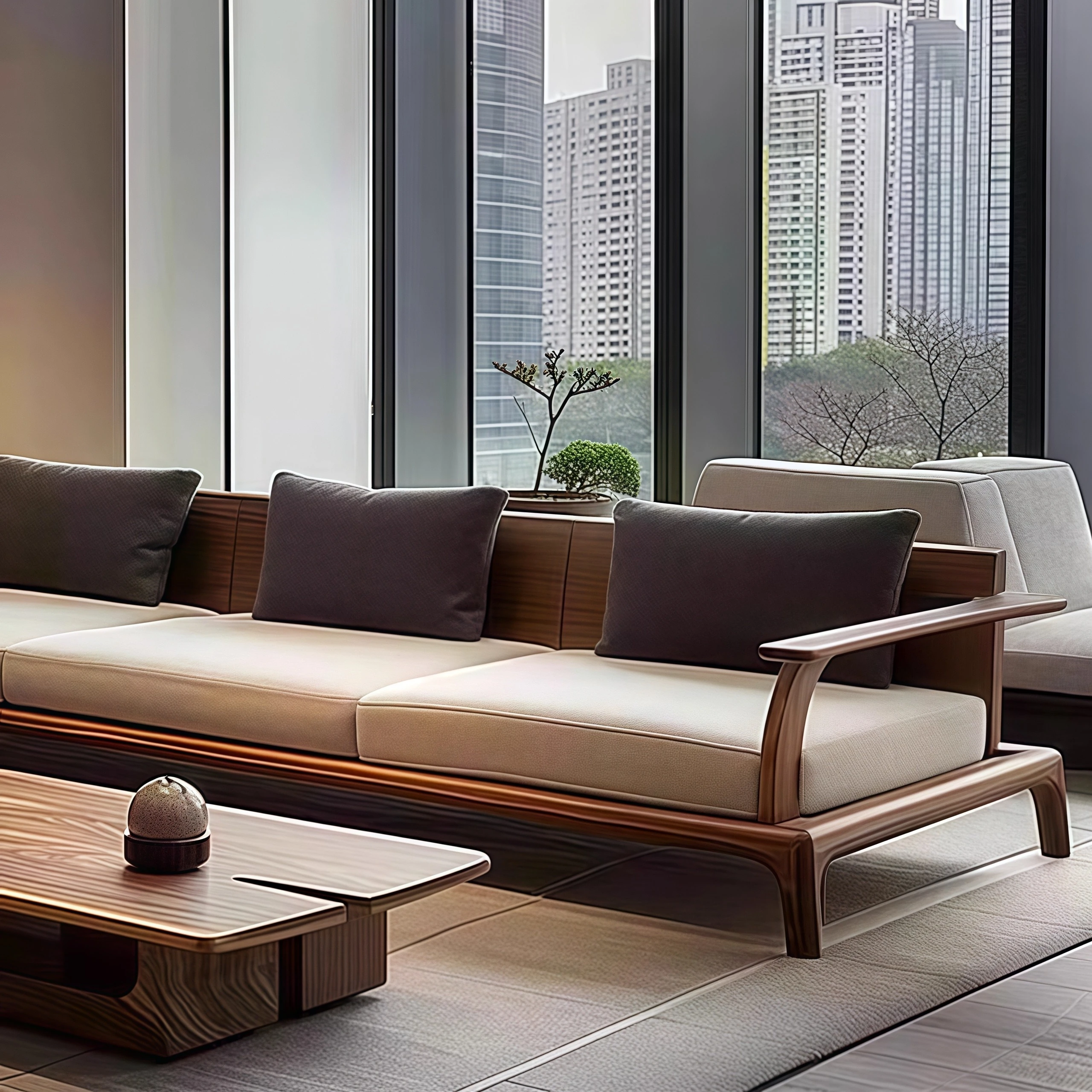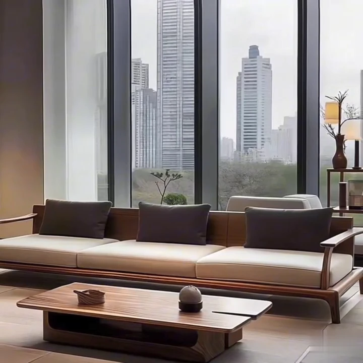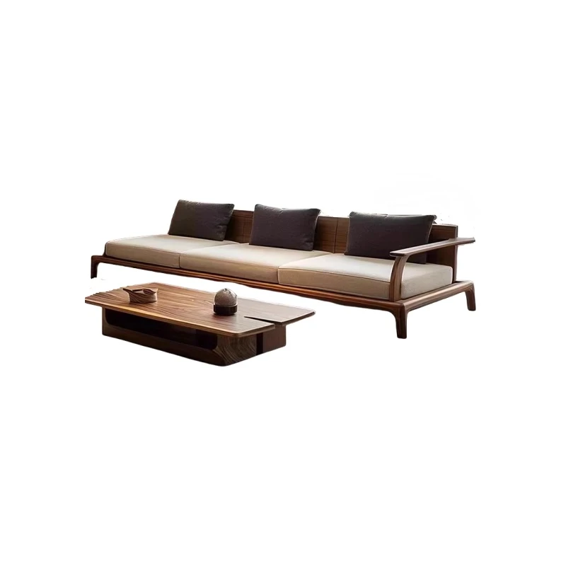 2025 New Minimalist Chinese Style Solid Wood Sofa Set - Modern Living Room Furniture in North American Black Walnut with Wabi-Sabi Aesthetic