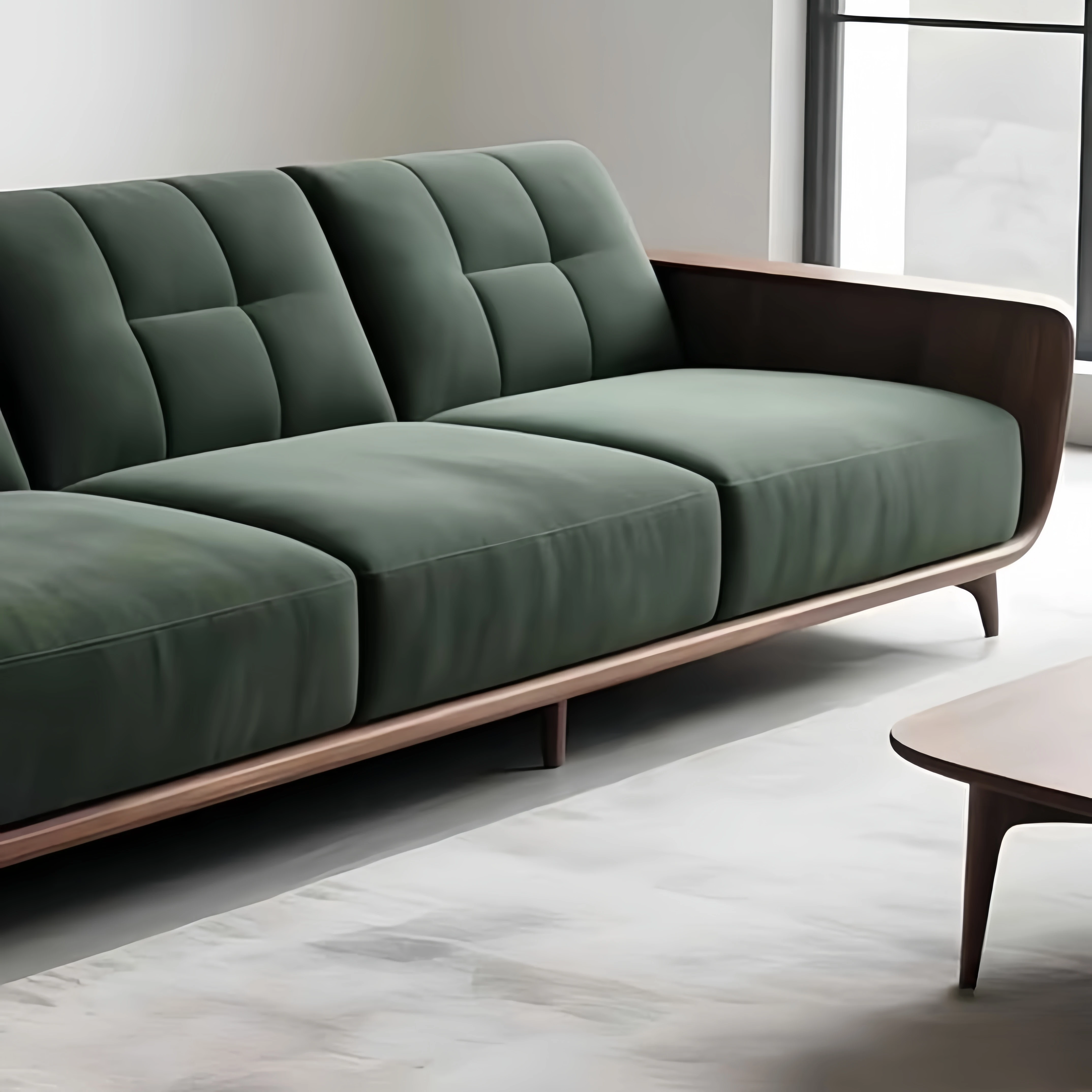 2025 New Minimalist Modern Light Luxury Black Walnut Sofa - Customizable Solid Wood Straight Sofa for Your Living Room
