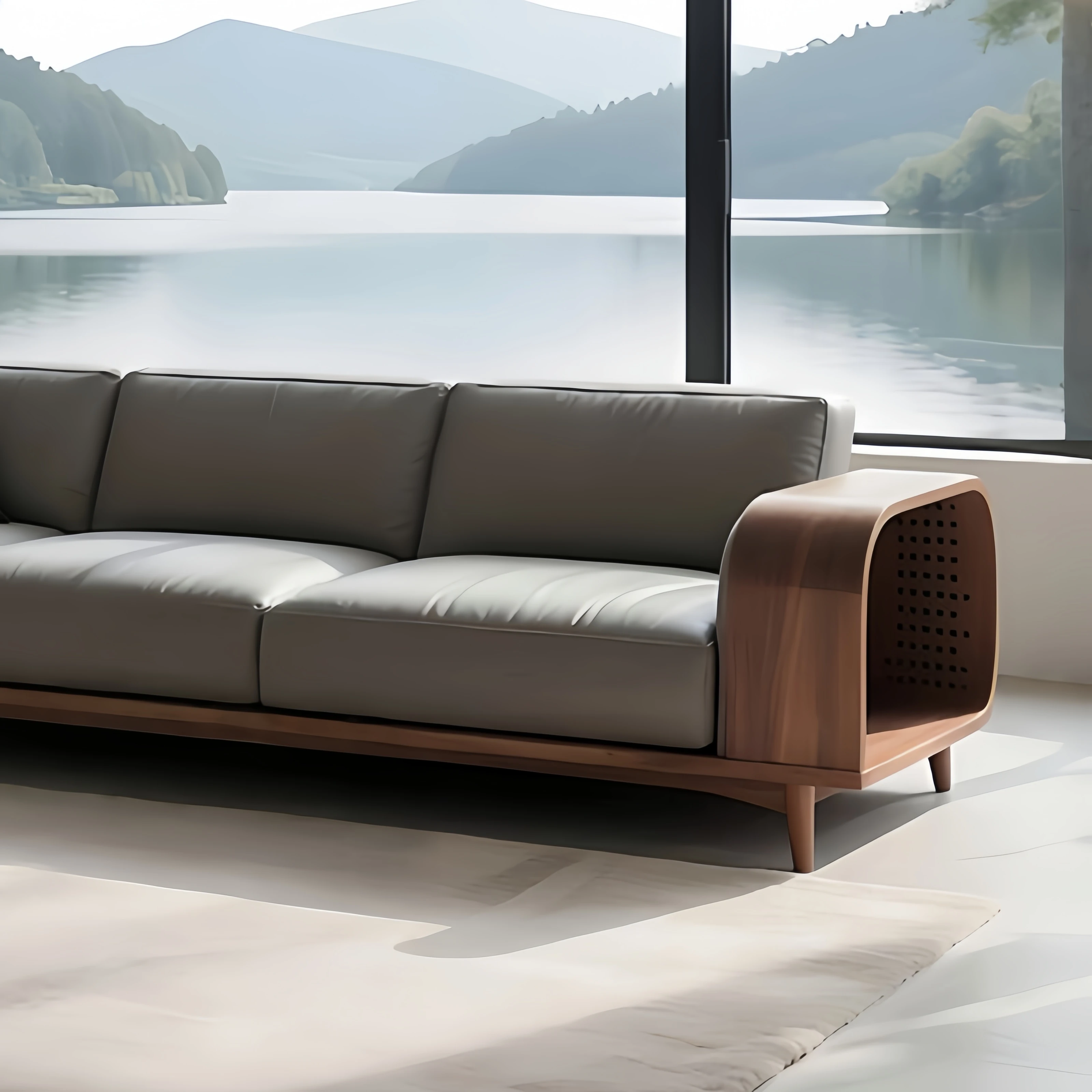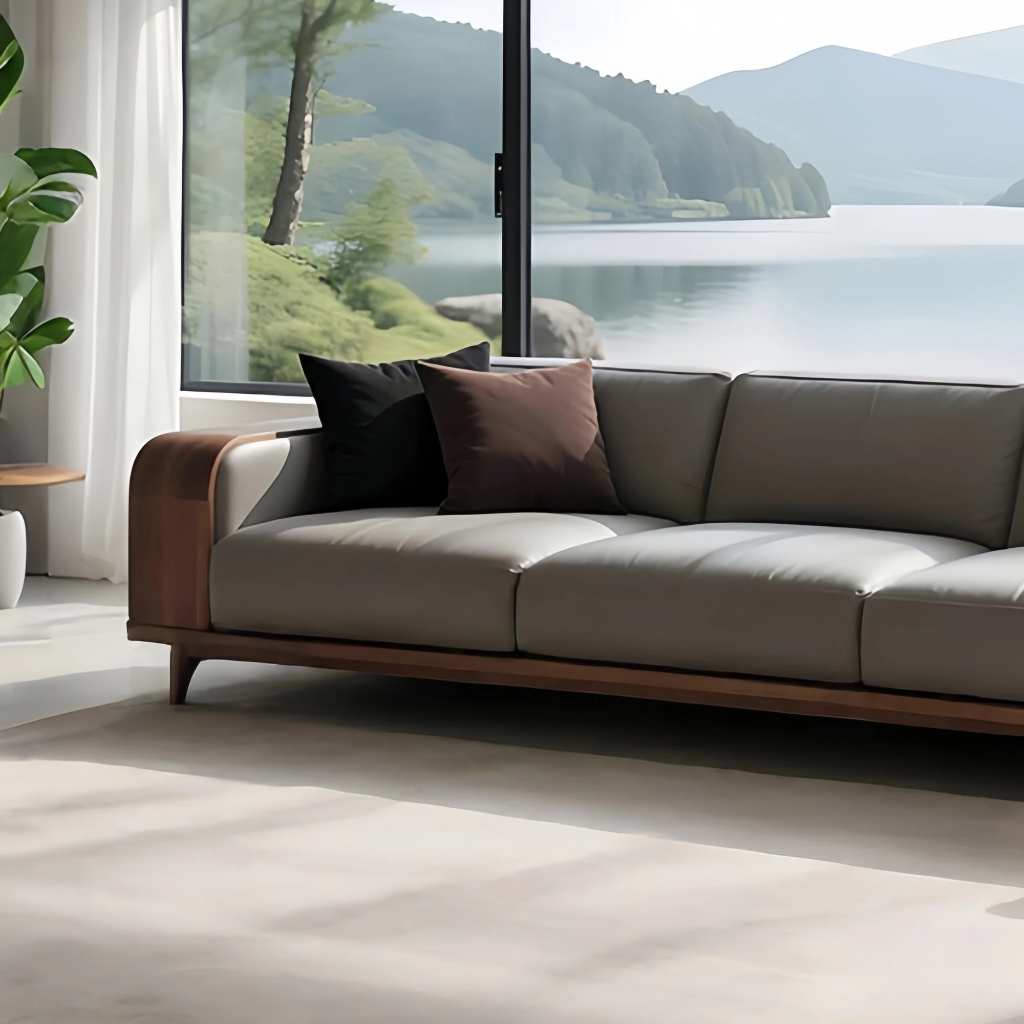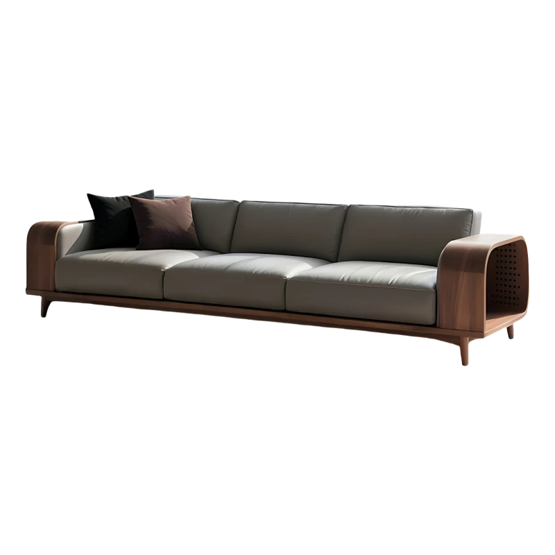 2025 New Style: Elegant Chinese Modern Sofa - Italian Minimalist Design for Home, Office, and Lounge, Featuring Premium Walnut Wood - Comfortable 3-Seater Sofa