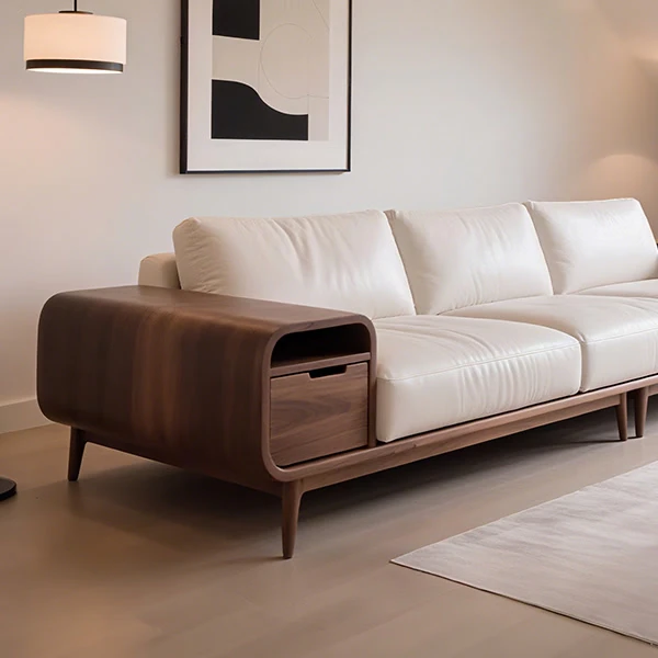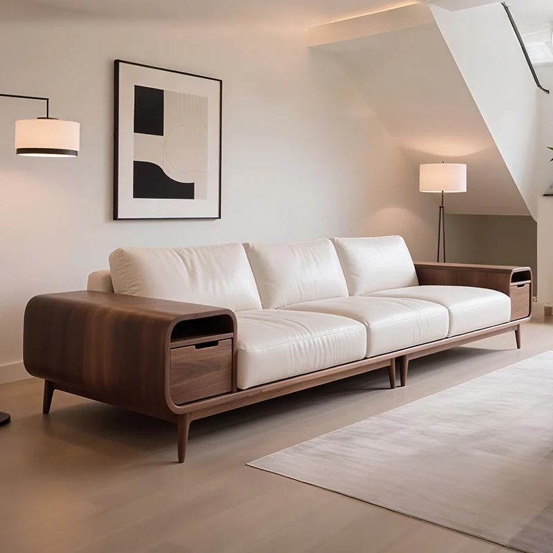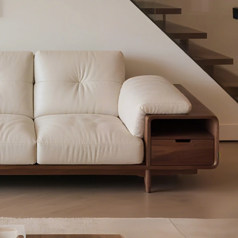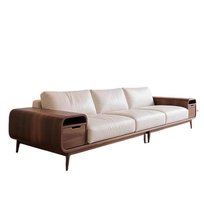 2025 New Style Solid Wood Sofa - Luxurious Minimalist Design in Black Walnut for Living Room, Featuring Song Dynasty Aesthetics