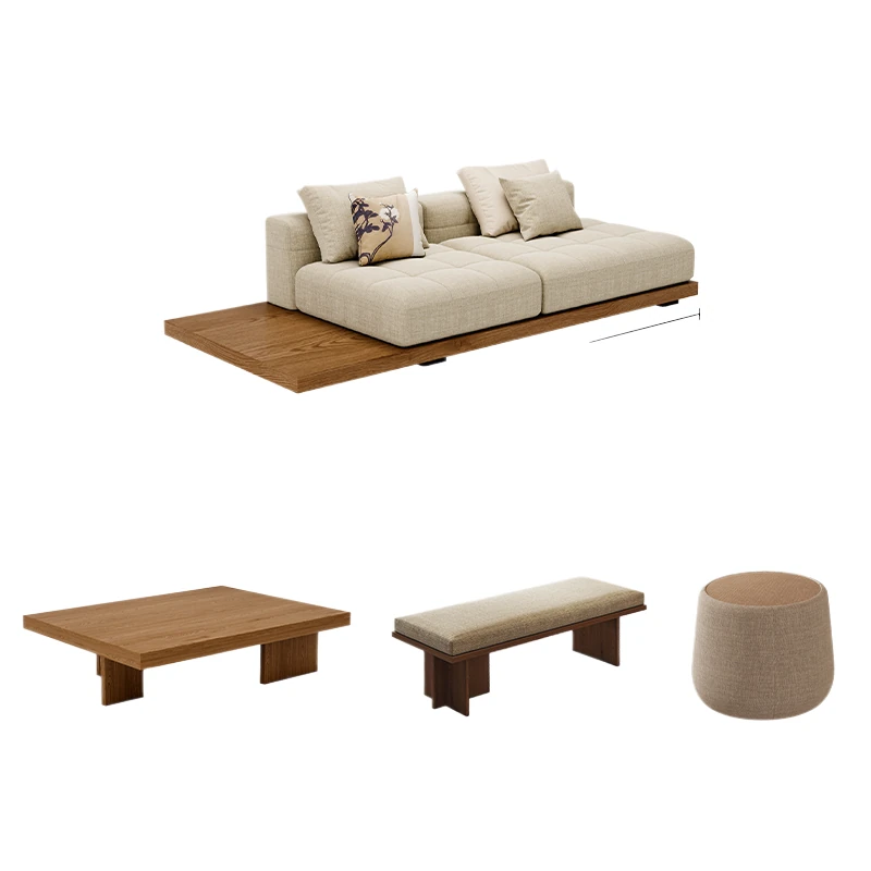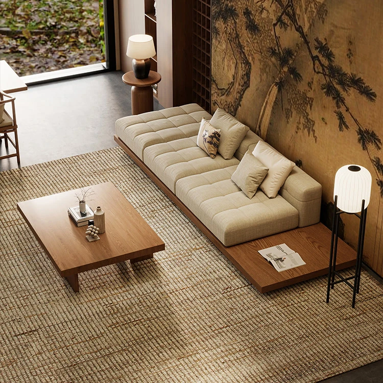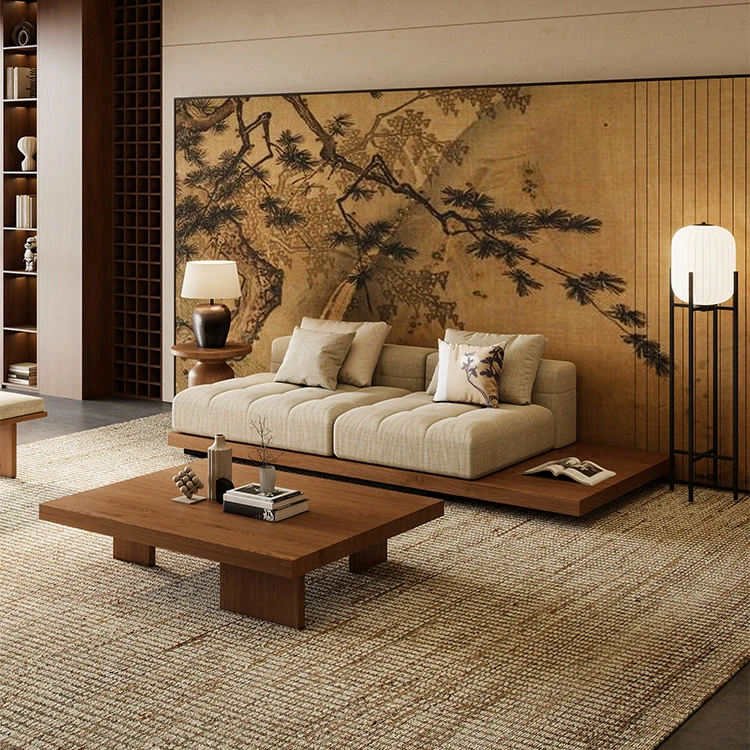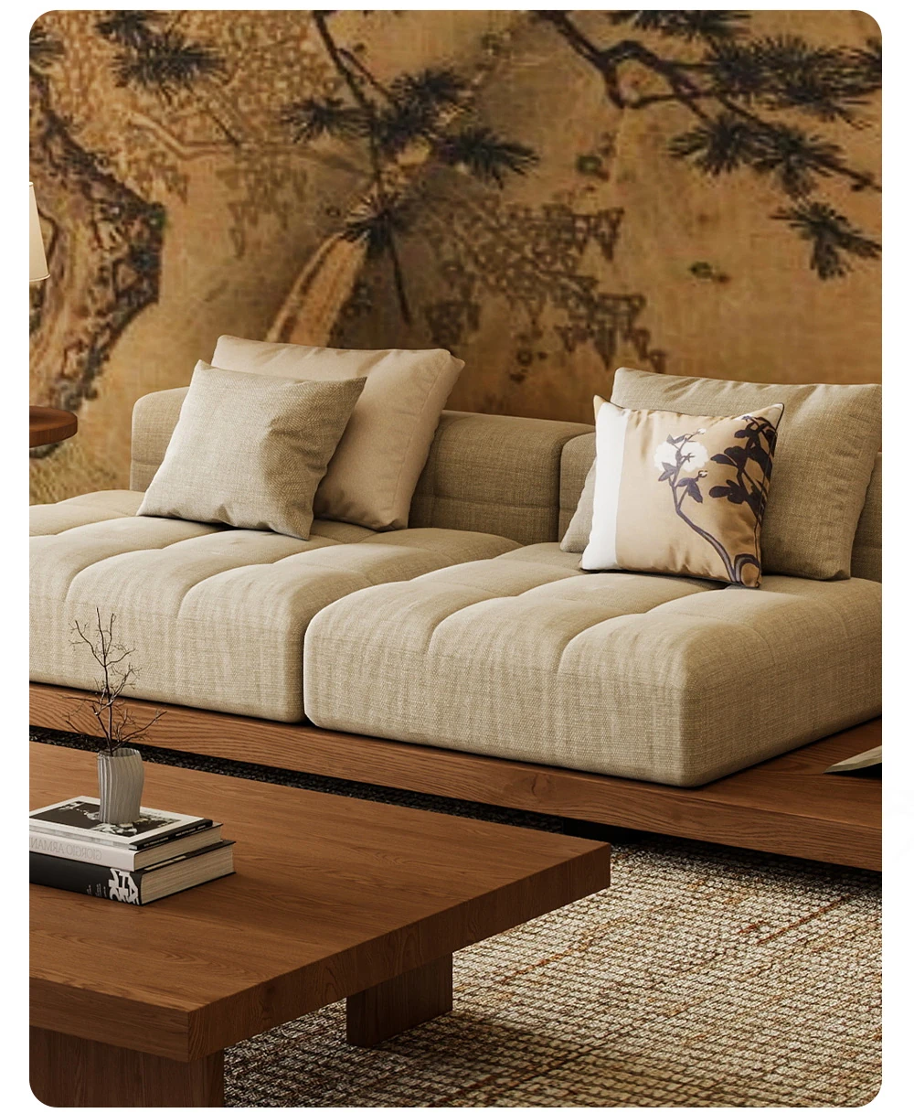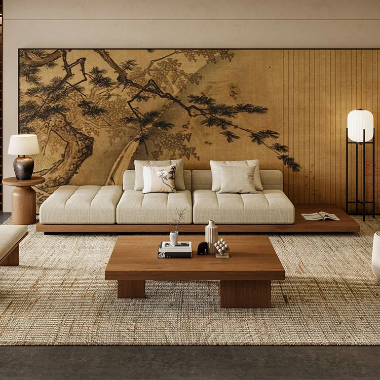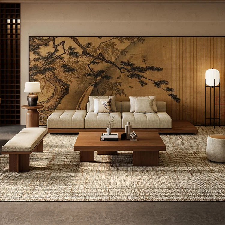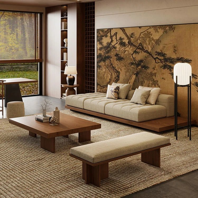 2025 New Zen-Style Walnut Solid Wood Sofa - Elegant Straight-Line Design Inspired by Song Dynasty Aesthetics for Your Living Room