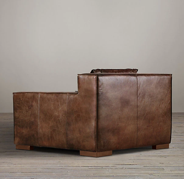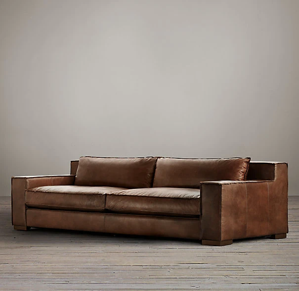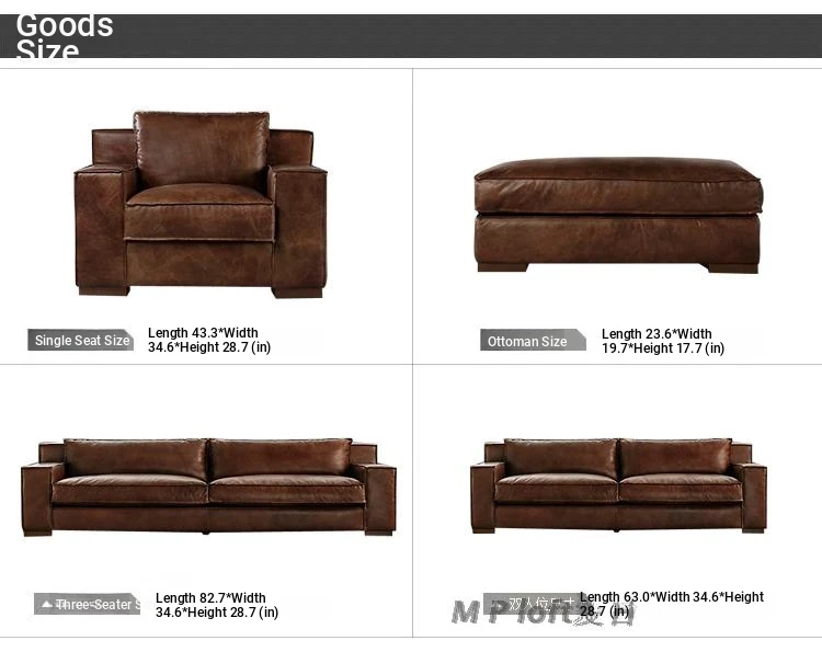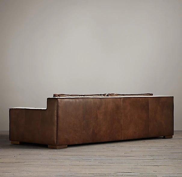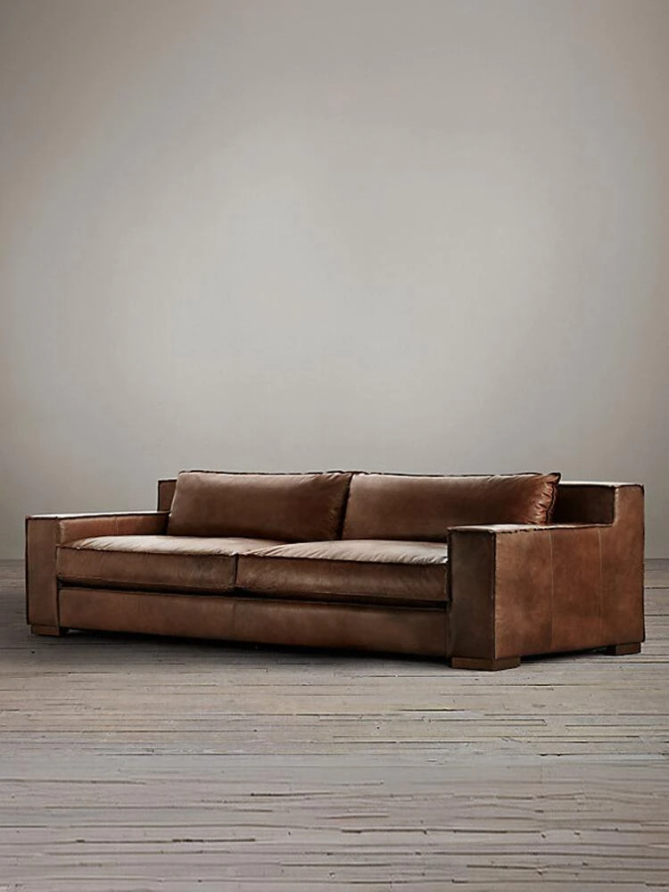 American Industrial Loft Vintage Waxed Leather Sofa for Small Living Rooms – Retro Style Double Three-Seater Office Couch