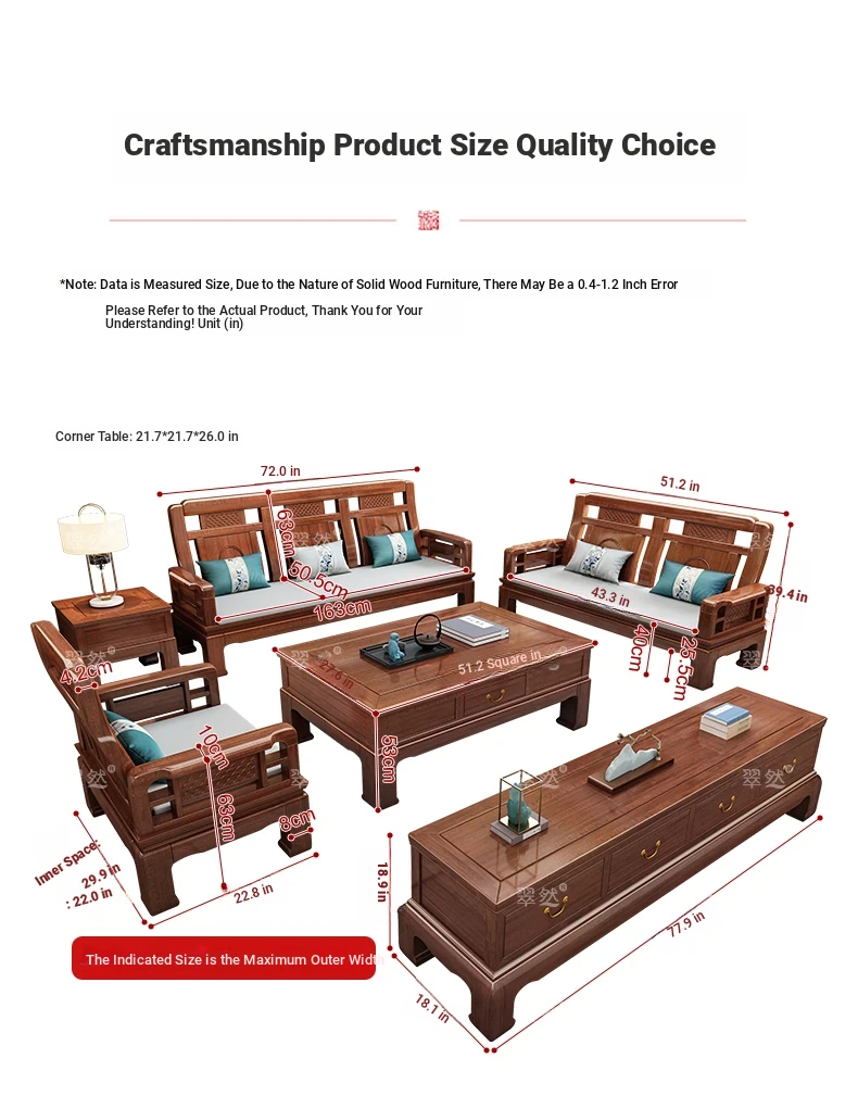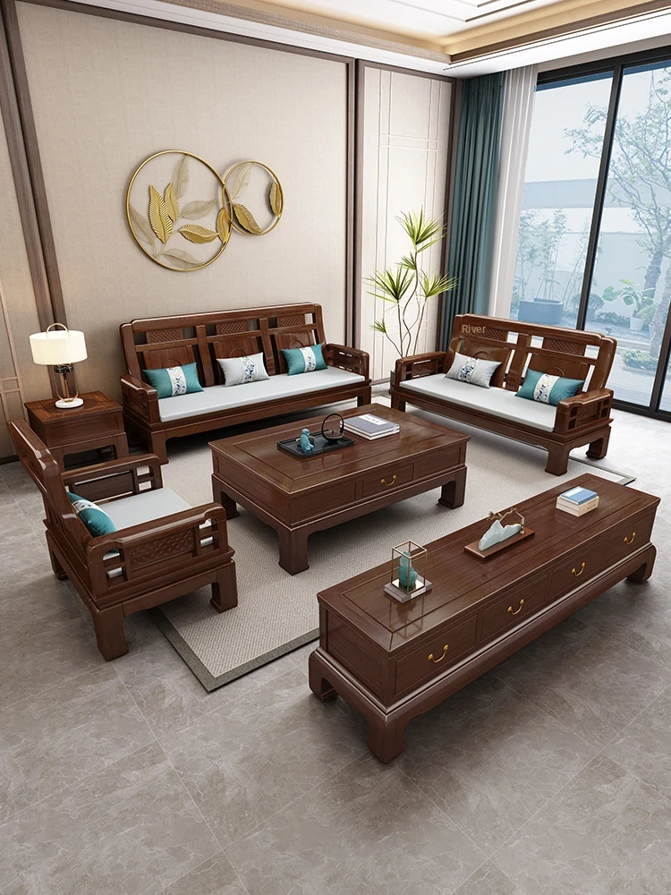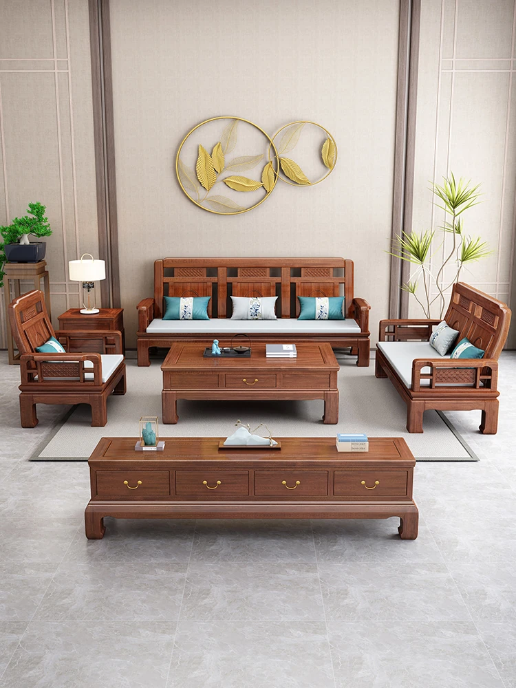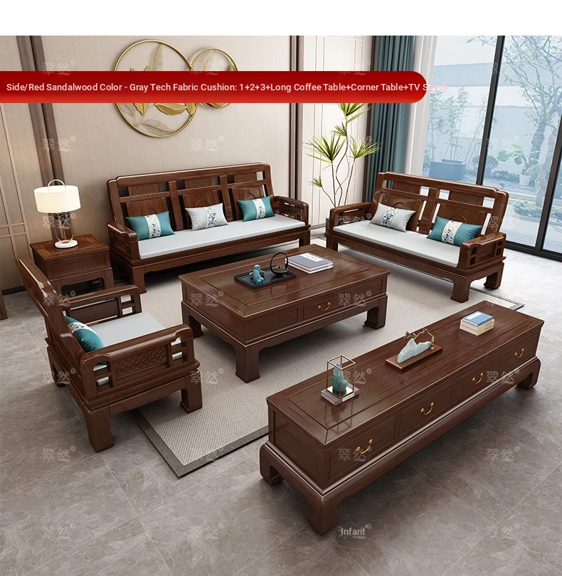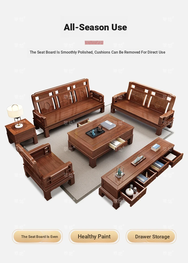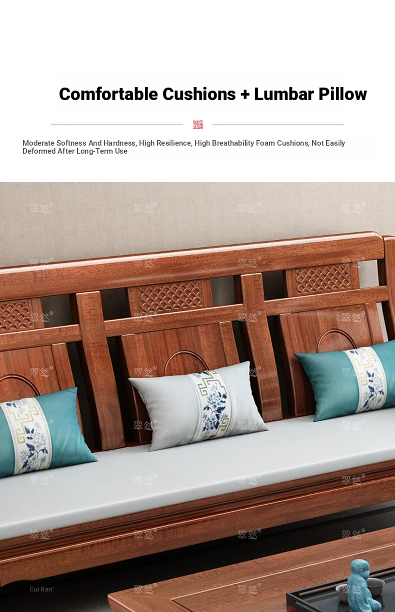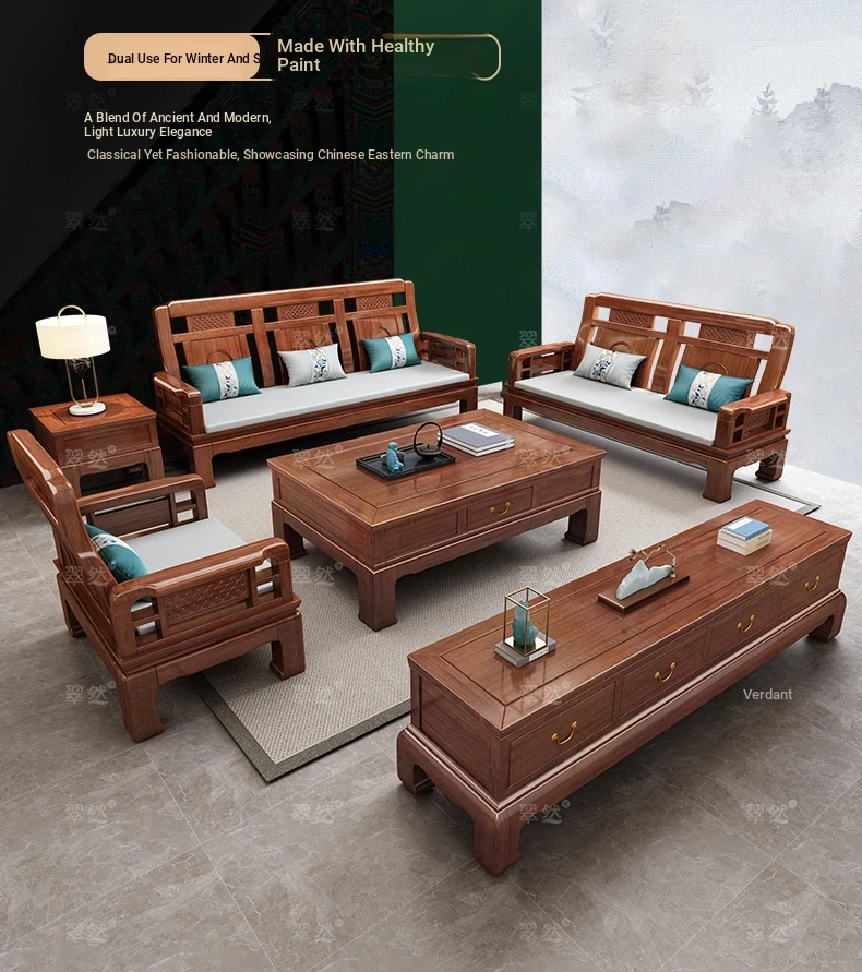 Classic Chinese Solid Wood Sofa for Living Room - Versatile Three-Seater for Winter and Summer, Ideal for Small Rural Homes - Crafted from Quality Oak Furniture