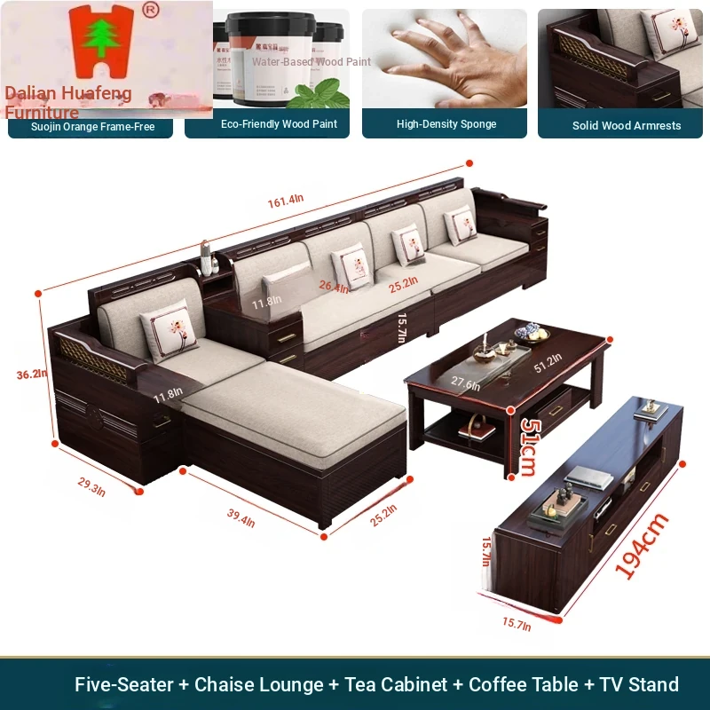 Five-person Imperial Concubine + middle box + tea table + single person + TV cabinet