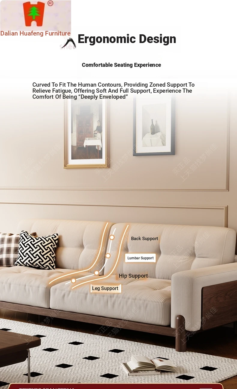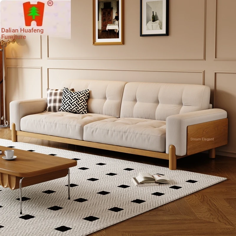 Solid wood sofa 94.49 in [log color + Rice White] 10-year warranty