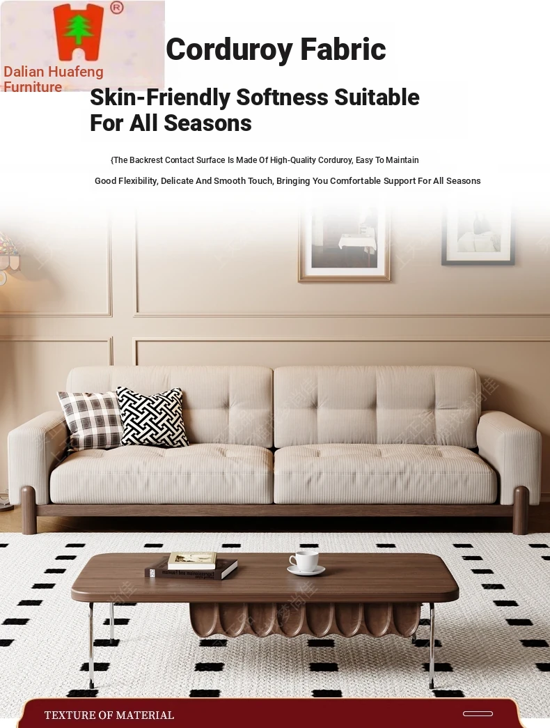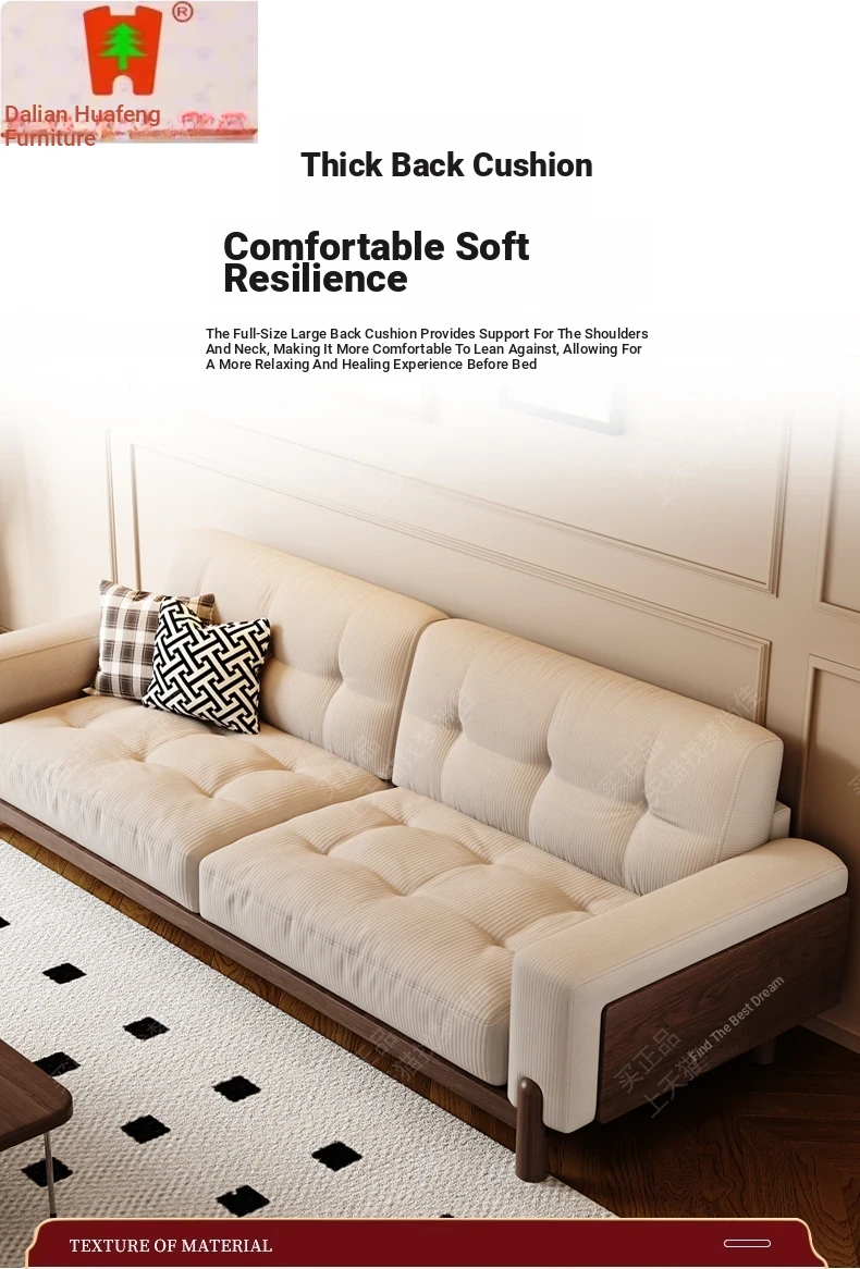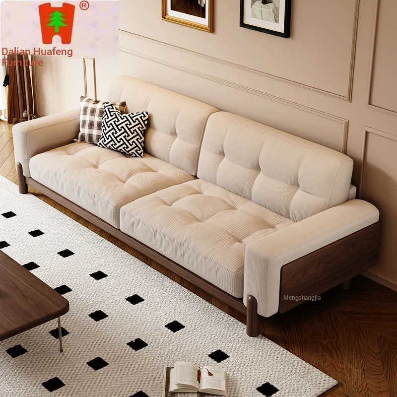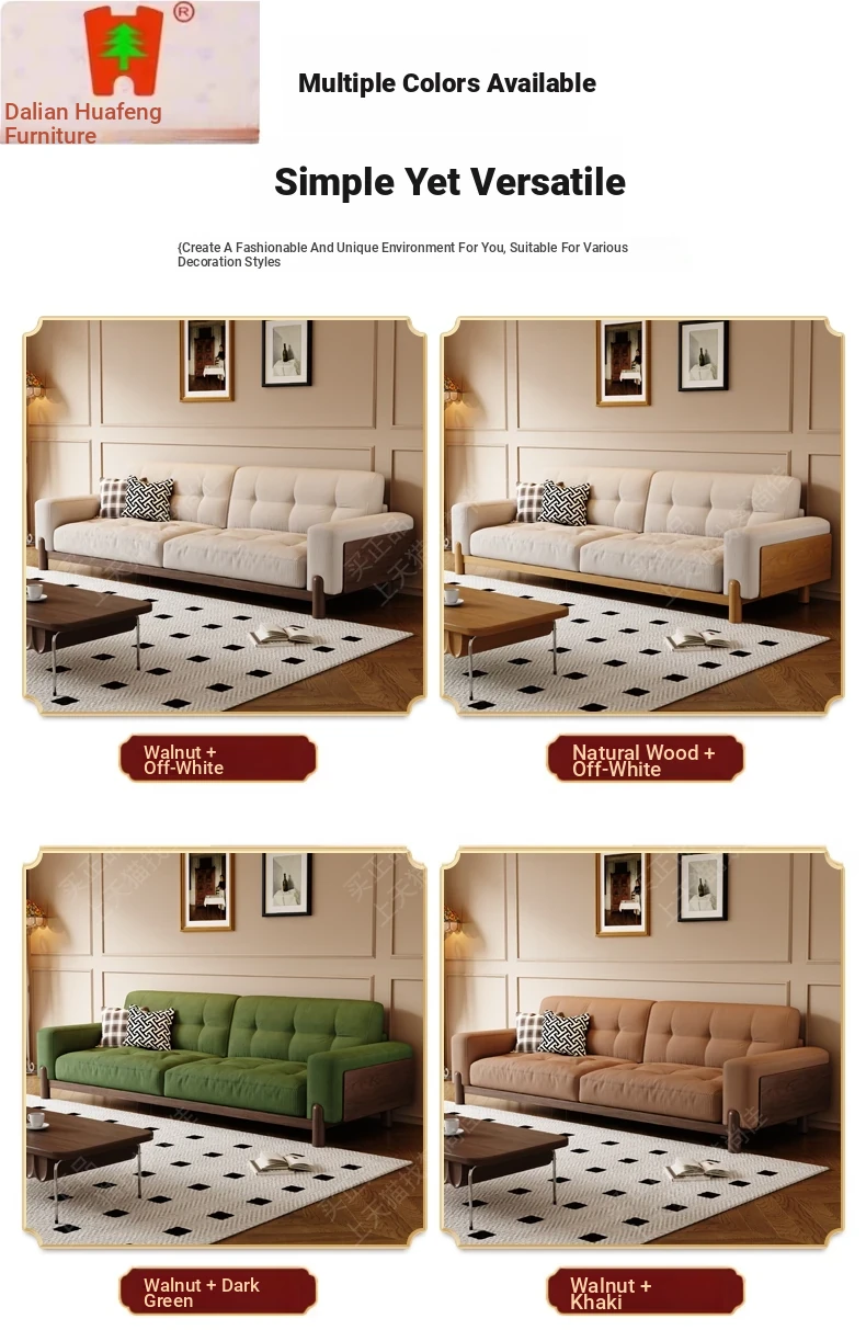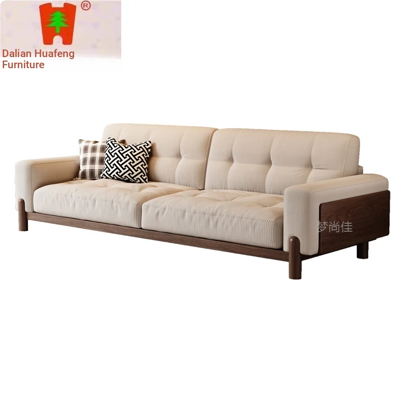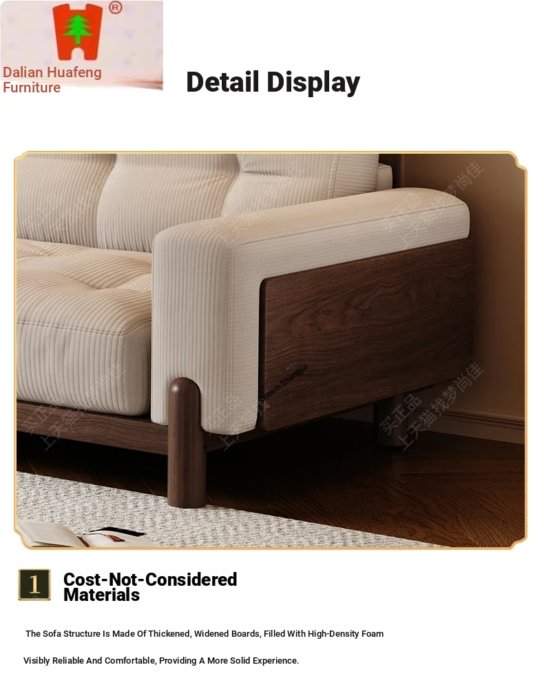 Solid wood sofa 82.68 in [walnut + Rice White] 10-year warranty