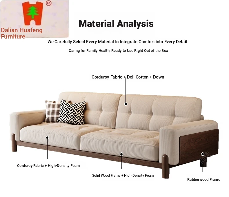 Solid wood sofa 82.68 in [log color + Rice White] 10-year warranty