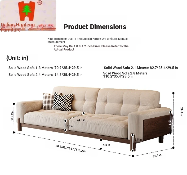 Solid wood sofa 110.24 in [log color + Rice White] 10-year warranty