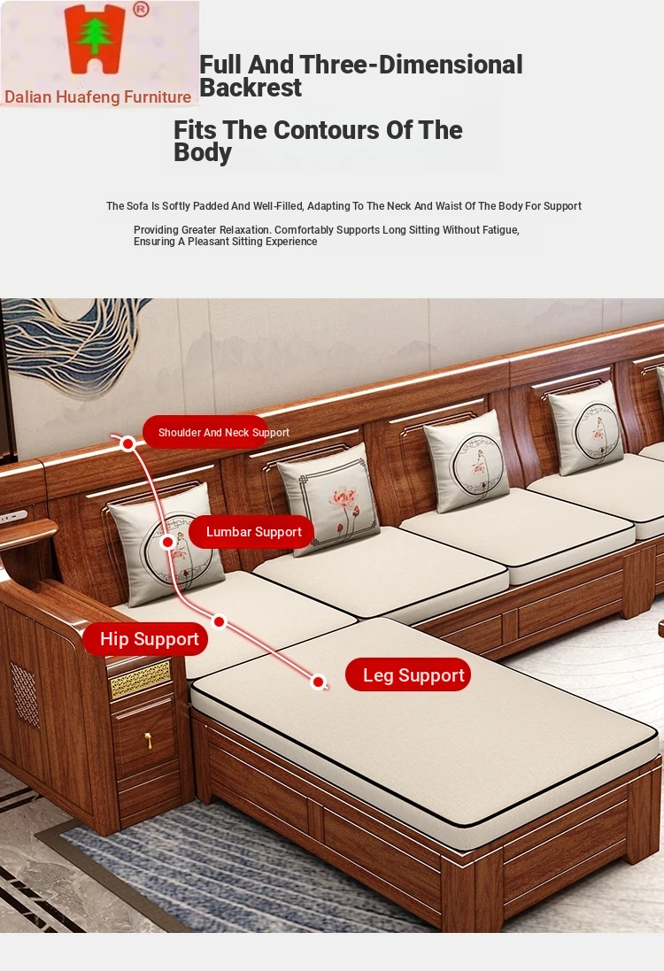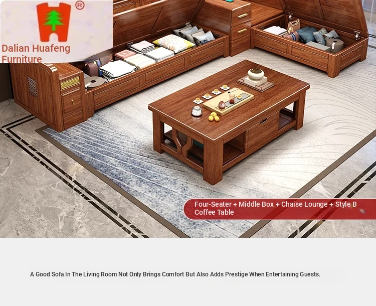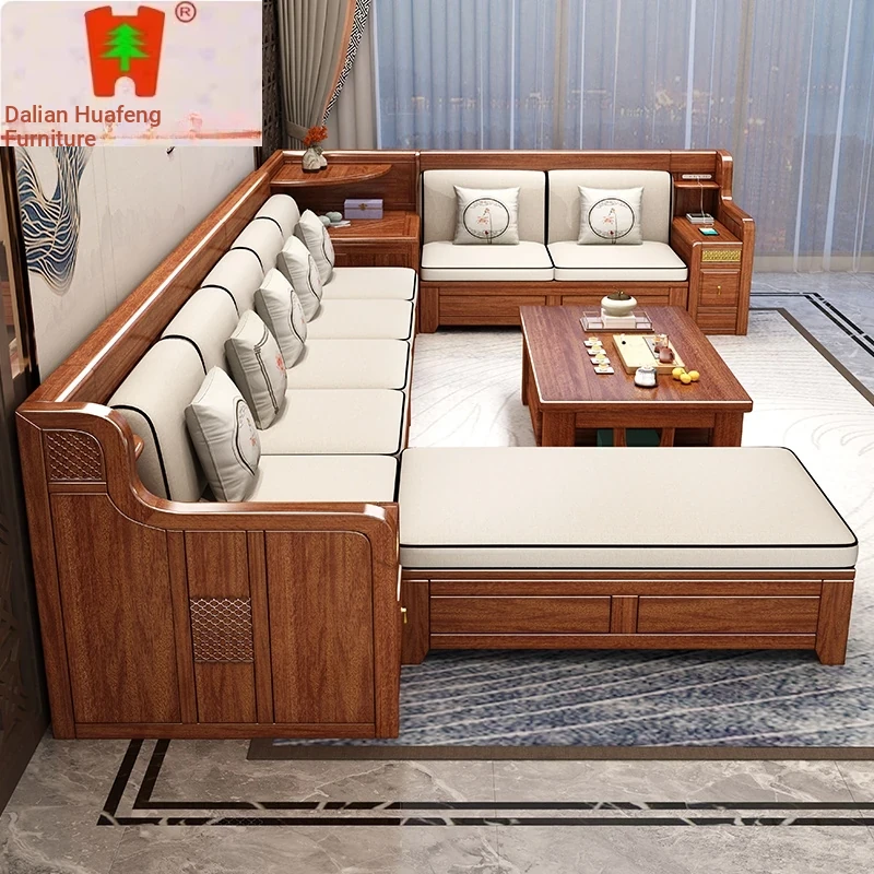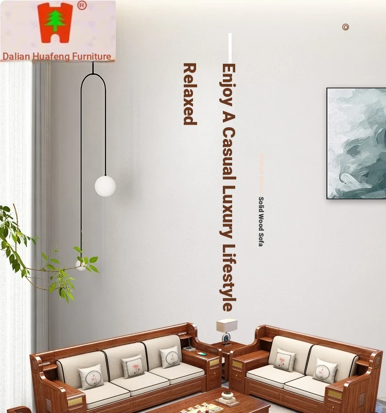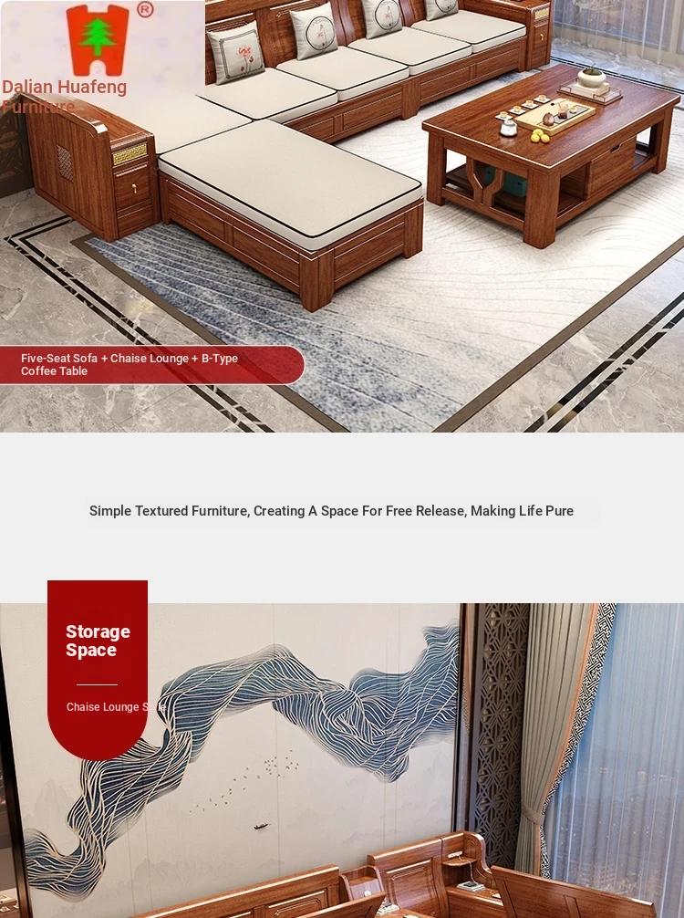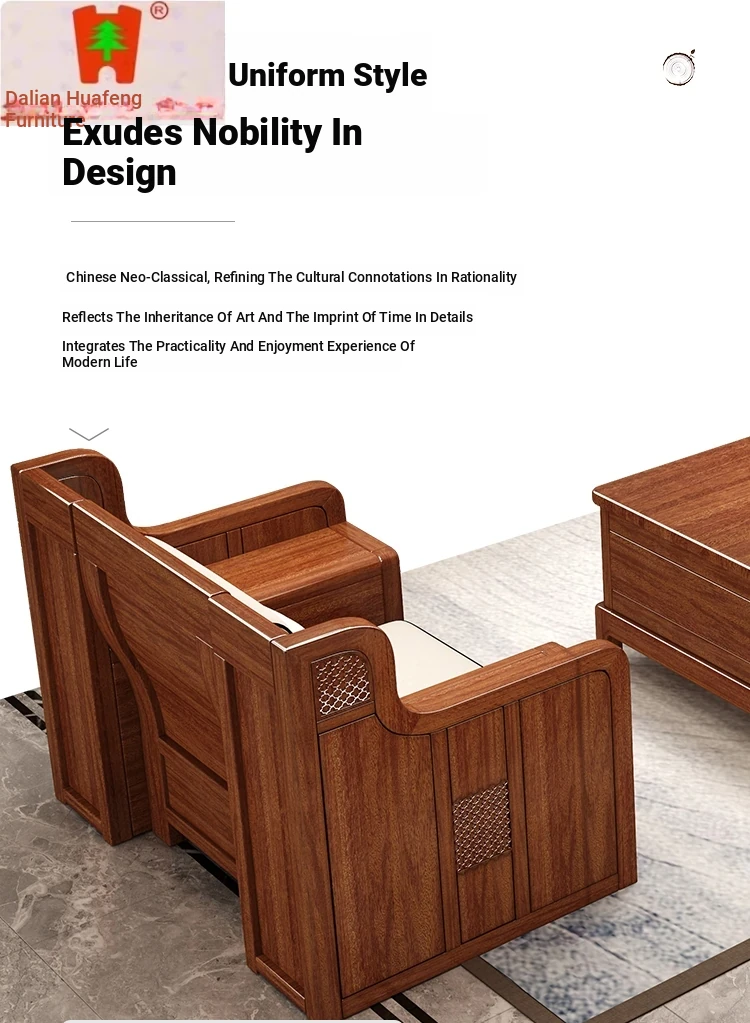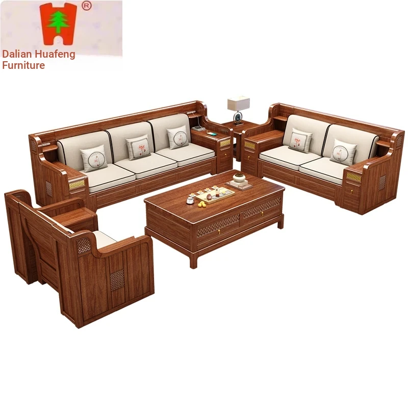 Dalian Huafeng Official Flagship Store Premium Thick Walnut Wood Sofa - 2024 New All Solid Wood Living Room Set