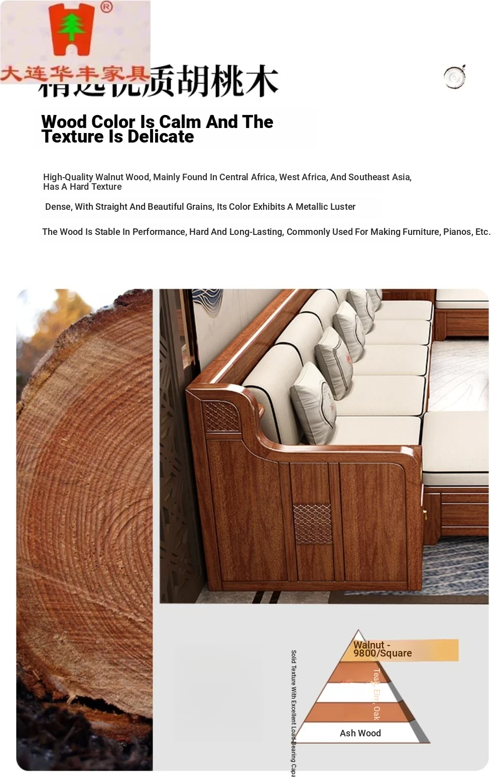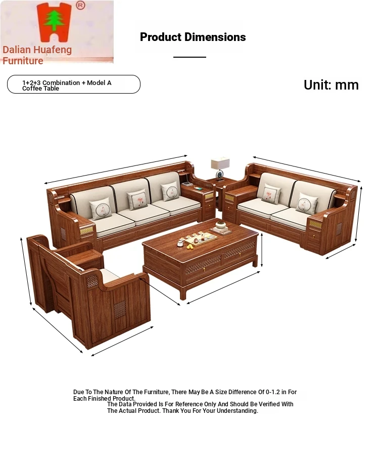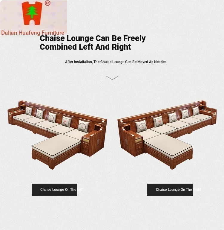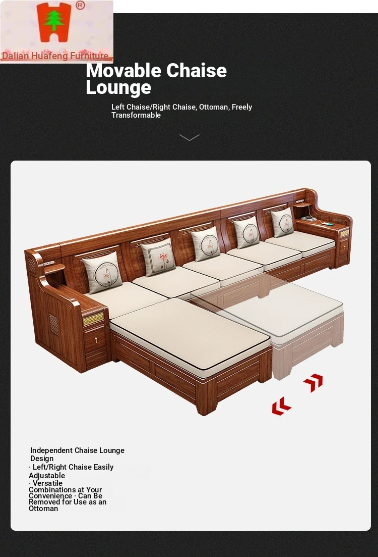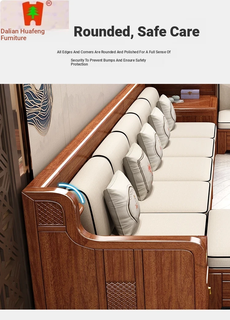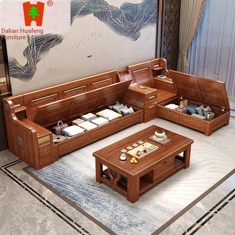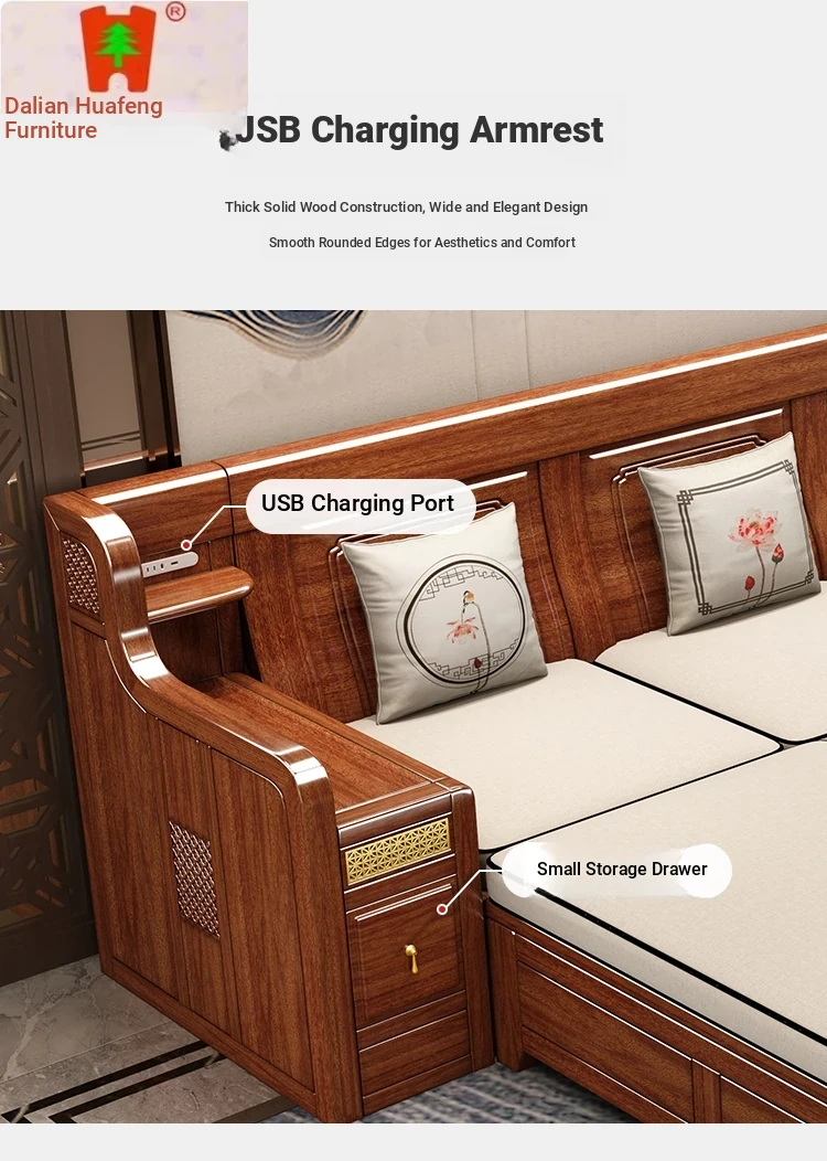 Dalian Huafeng Official Flagship Store Premium Thick Walnut Wood Sofa - 2024 New All Solid Wood Living Room Set