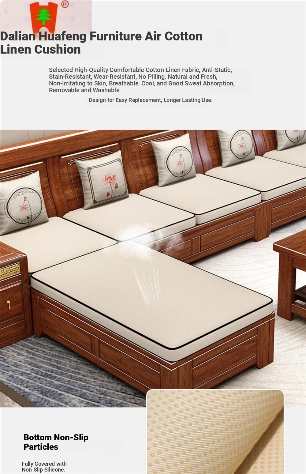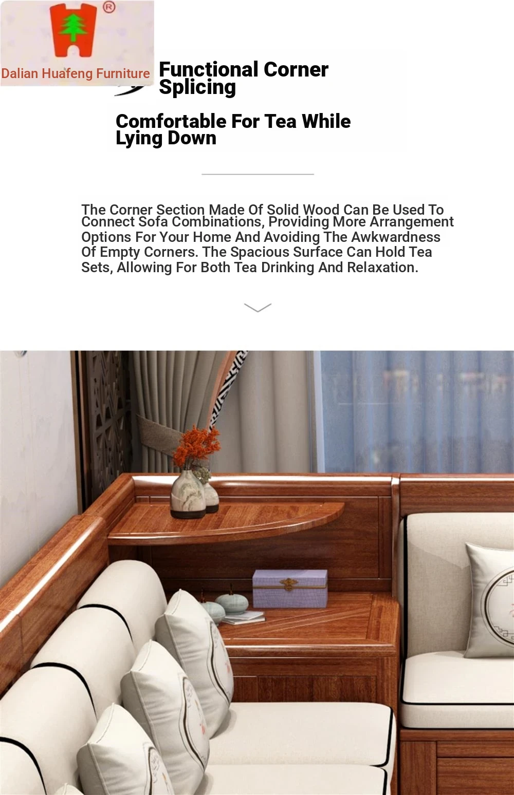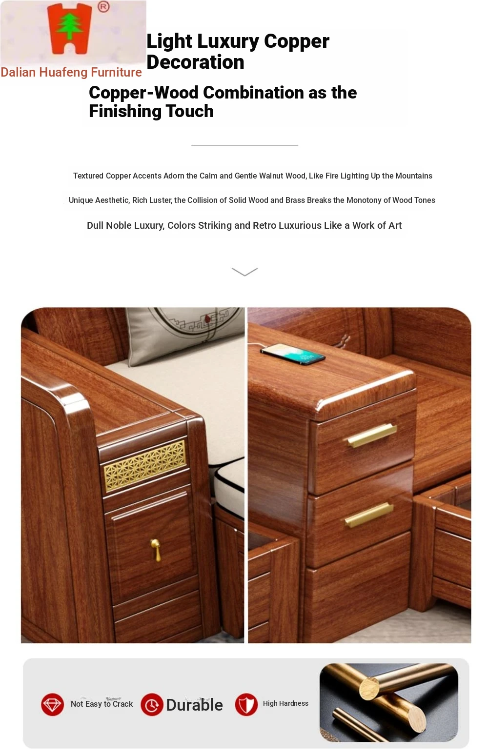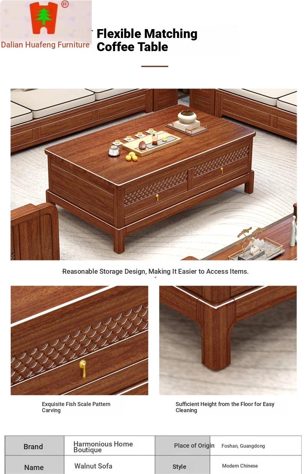 Dalian Huafeng Official Flagship Store Premium Thick Walnut Wood Sofa - 2024 New All Solid Wood Living Room Set
