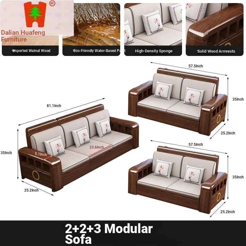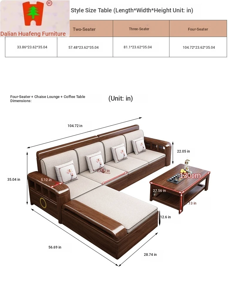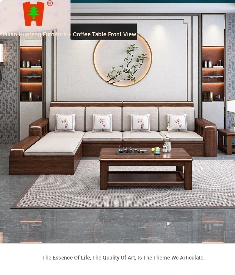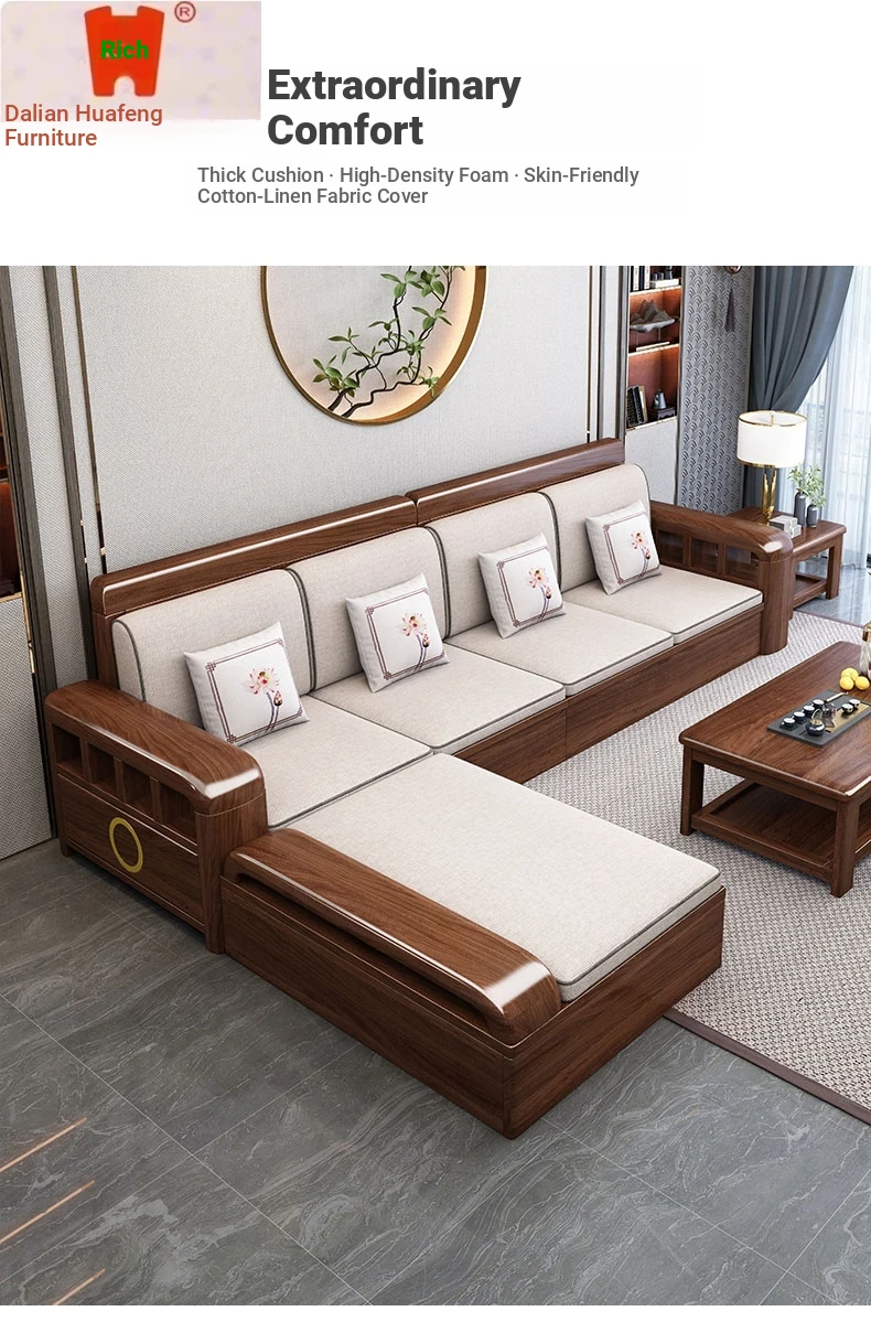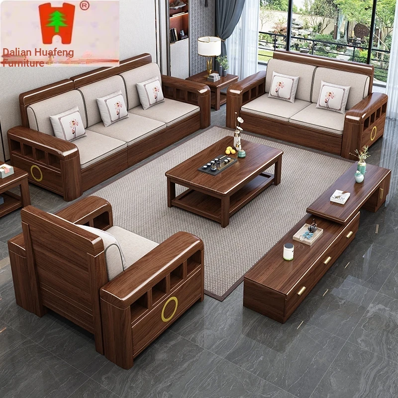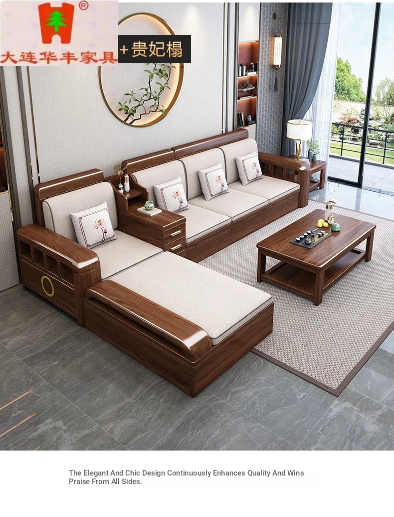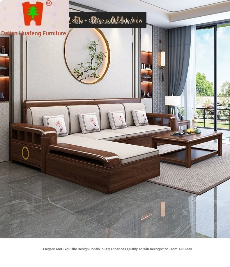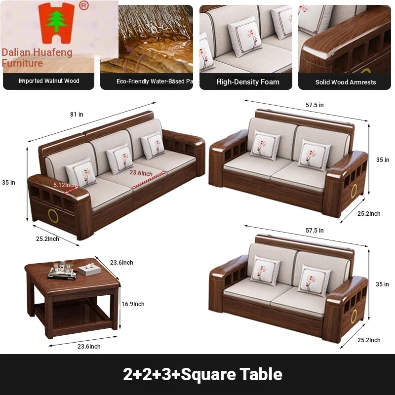 Dalian Huafeng Official Store - Elegant New Chinese Style Solid Wood Sofa Set in Golden Silk Walnut for Bedroom and Living Room - Versatile for All Seasons